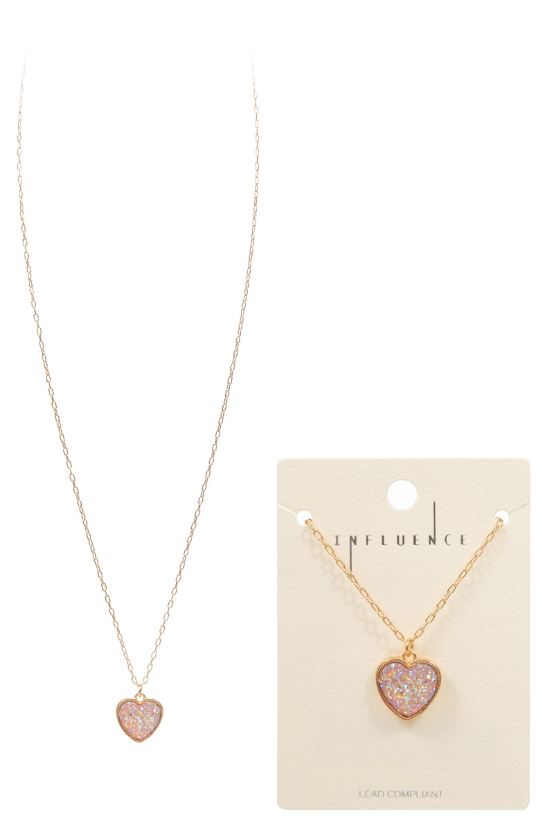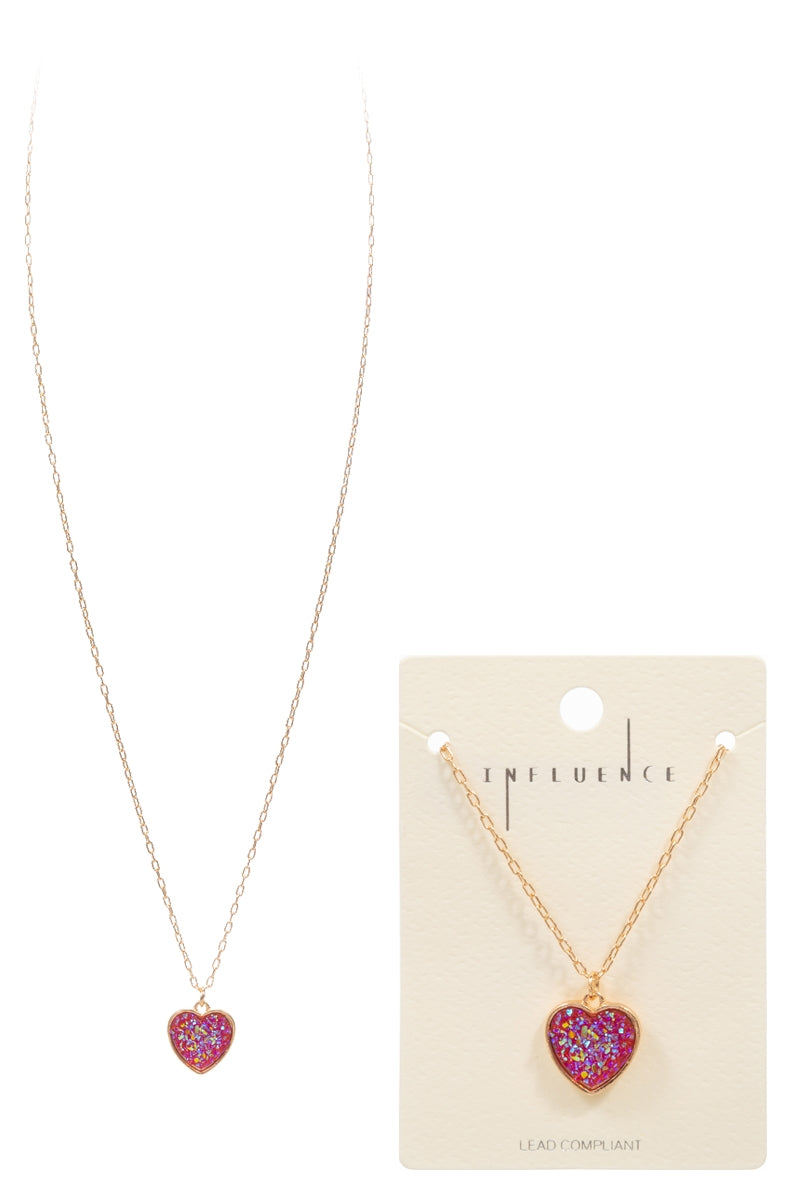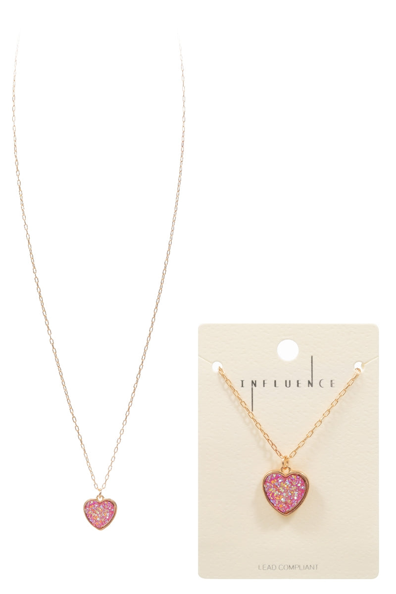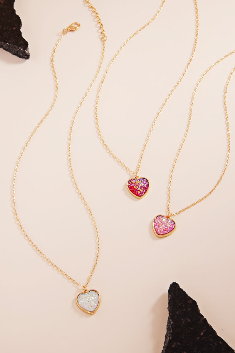 Valentines Day Heart Shaped Druzy Short Neckclace