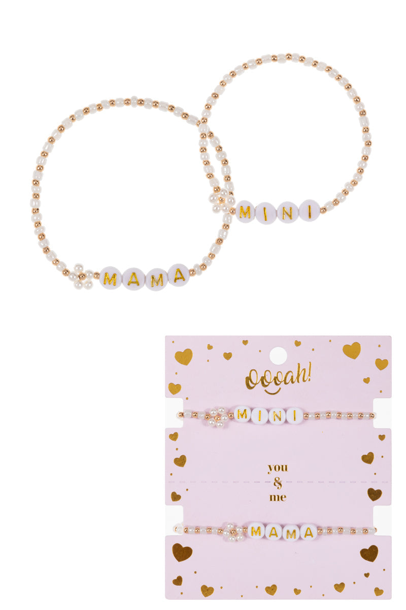 Flower Bead With Mama Mini Stretch Bracelet Set