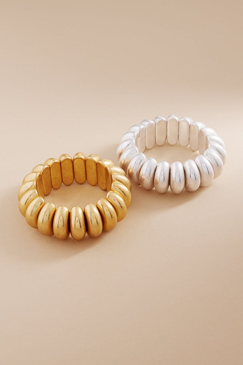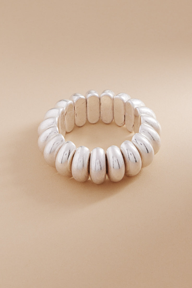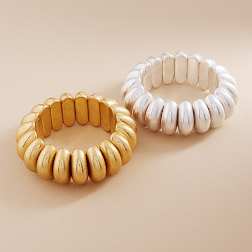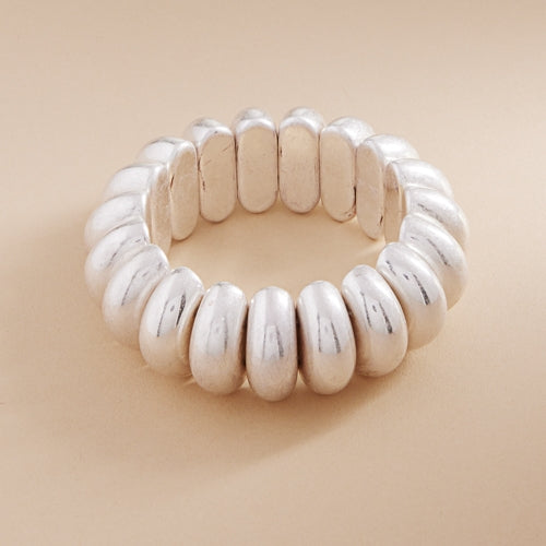 This 7.25 inch round shaped metal stretch bracelet is a versatile and durable accessory that adds a touch of elegance to any outfit. Made with high-quality metal, it can easily adapt to fit your wrist comfortably. Perfect for everyday wear or special occasions, this bracelet is a must-have for any jewelry collection.