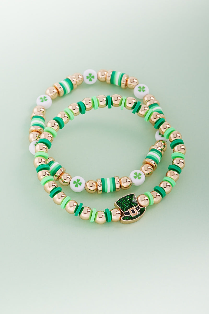Saint Patricks Hat Enamel Beaded Stretch Bracelet