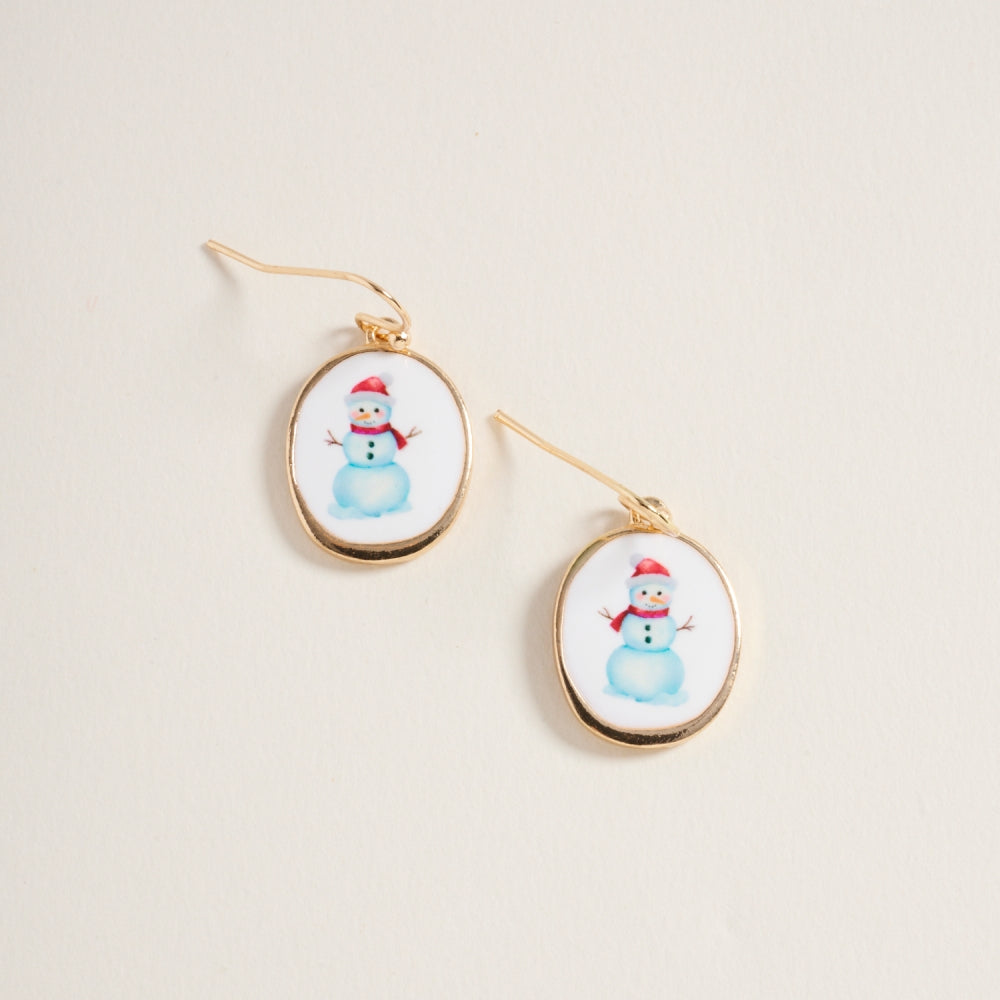 Christmas Snowman Enamel Stone Hook Earrings
