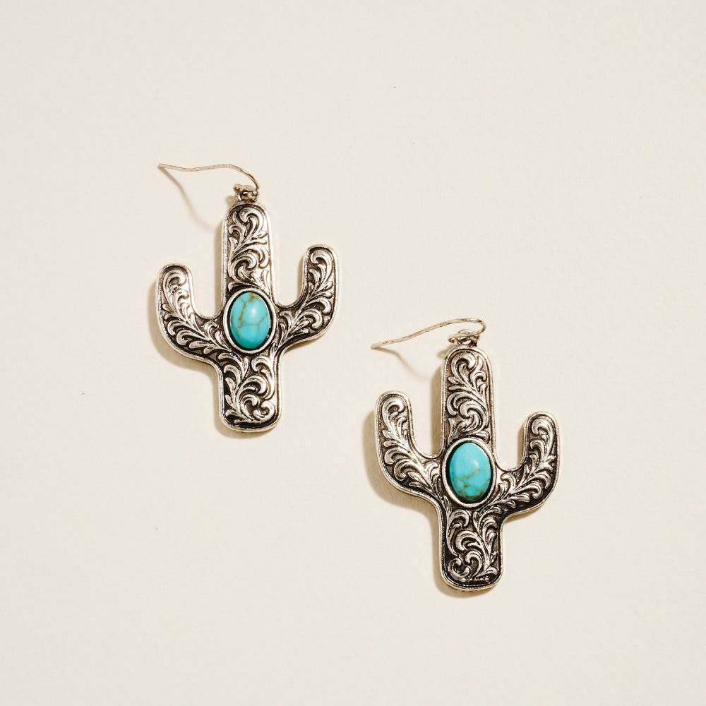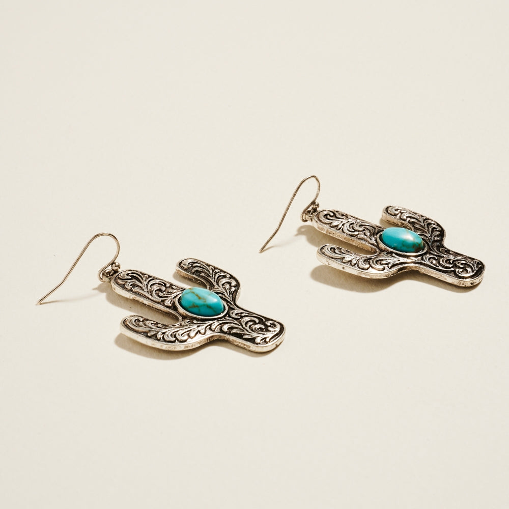 Crafted in boho-inspired detail, these semi-precious stone cactus earrings capture the beauty of nature with a free-spirited Western twist.