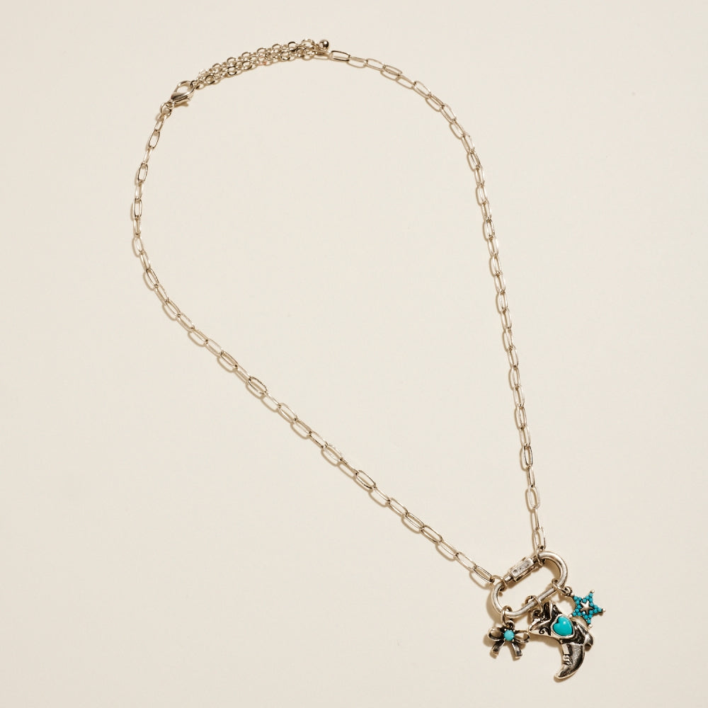 Carabiner Rodeo Star Boot Bow Charms Necklace West