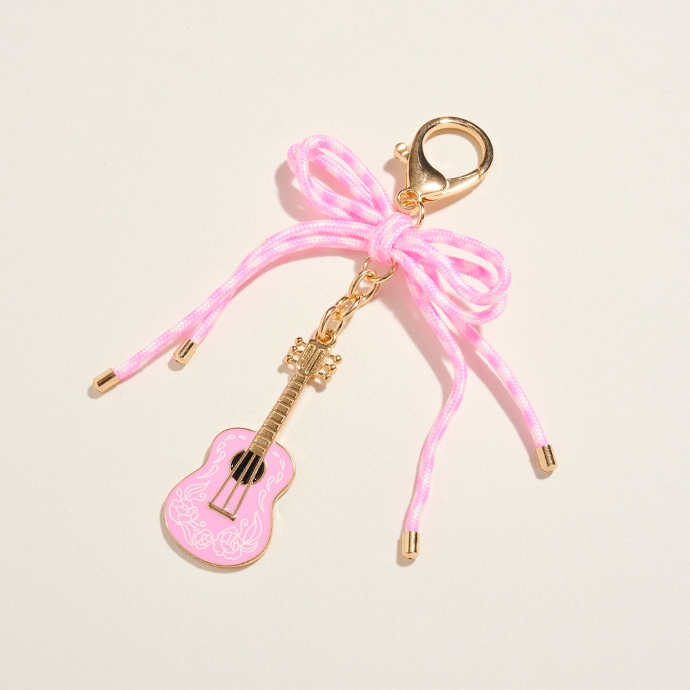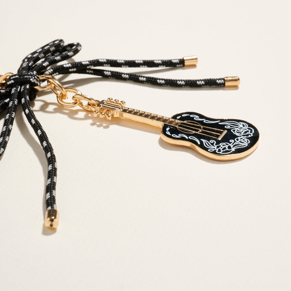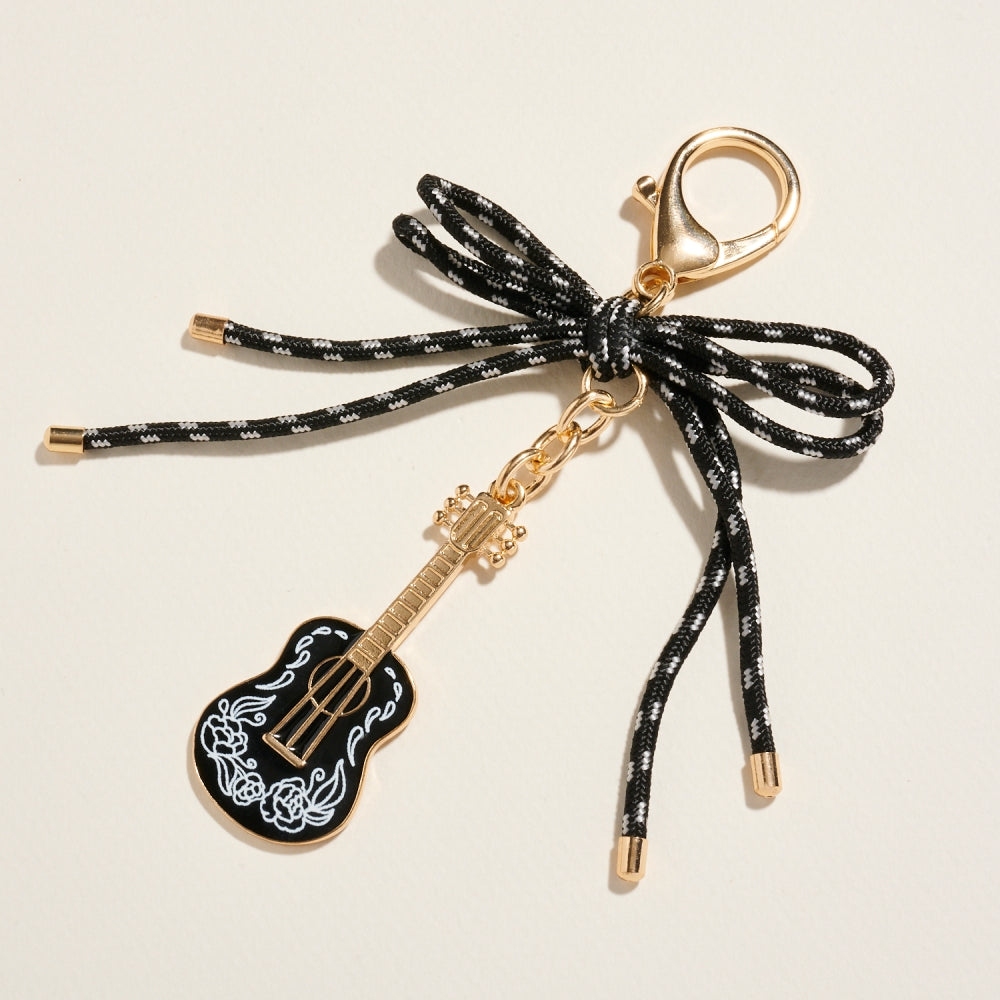 Show your rodeo and music pride with this Western guitar keychain. A unique accessory that doubles as both a decorative bag charm and a functional key holder.