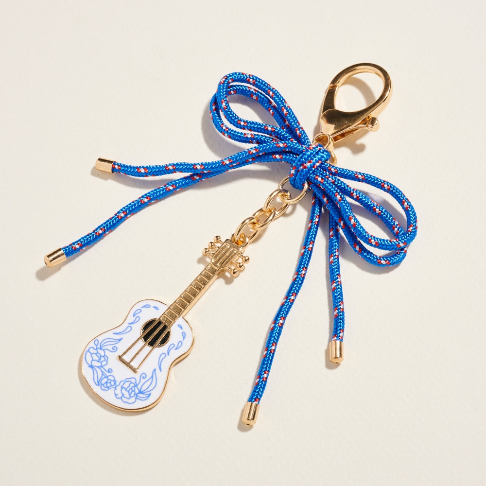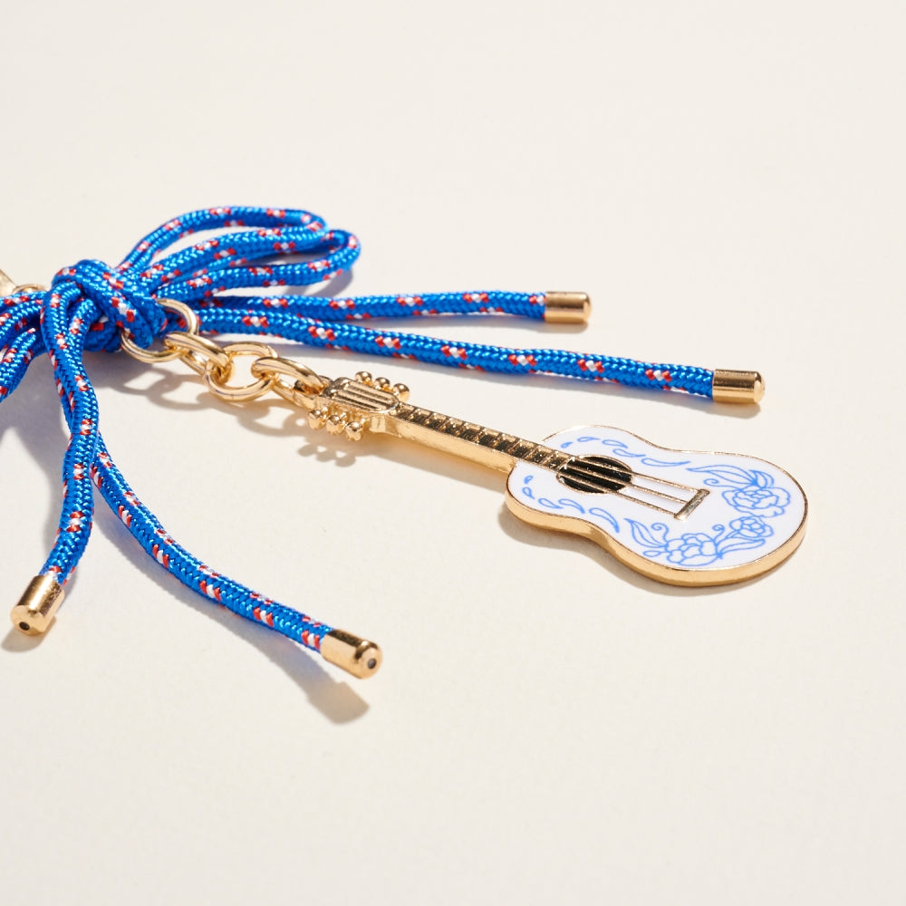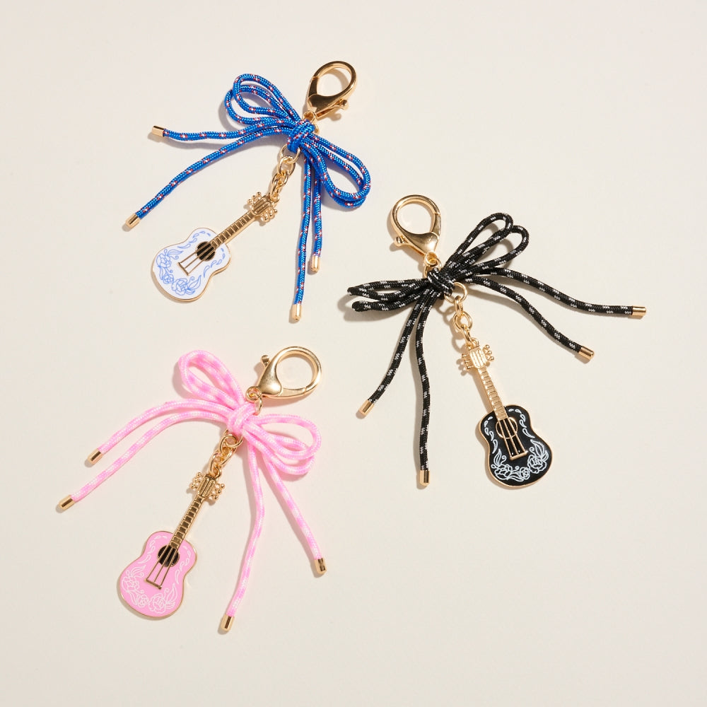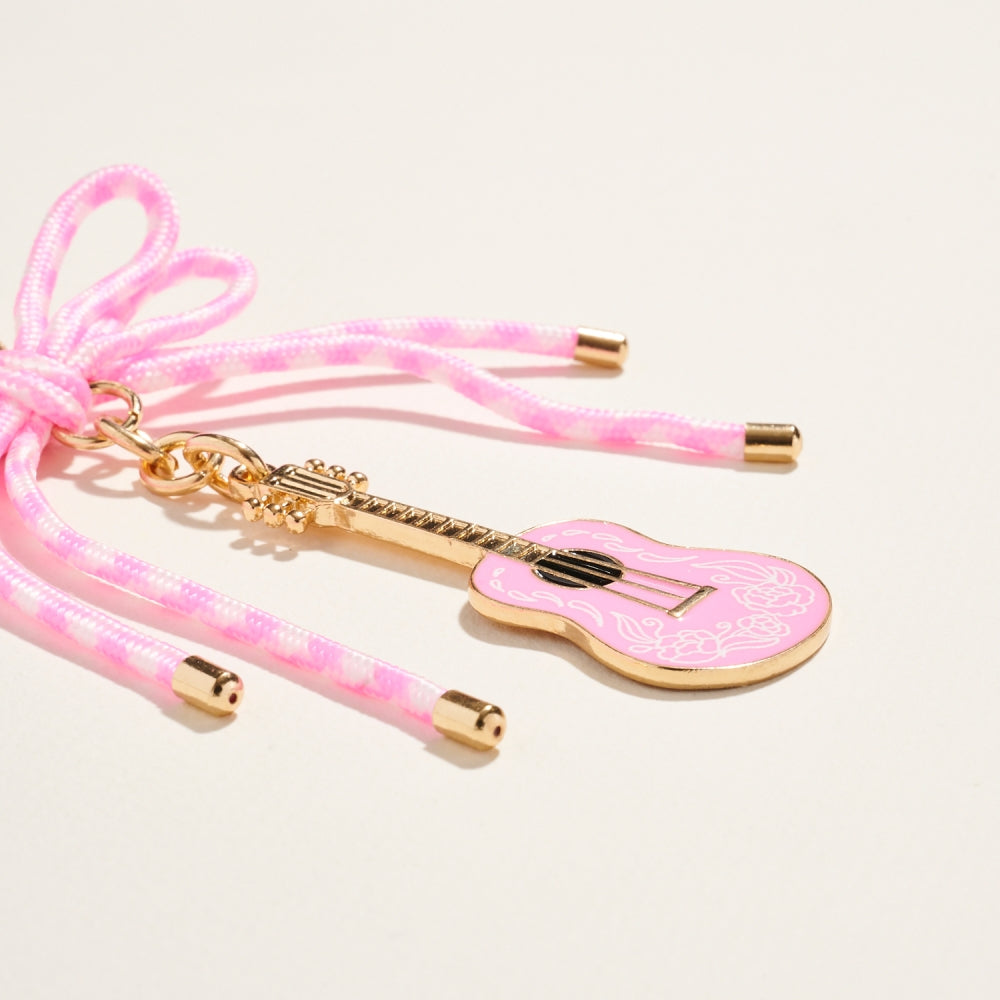 Show your rodeo and music pride with this Western guitar keychain. A unique accessory that doubles as both a decorative bag charm and a functional key holder.