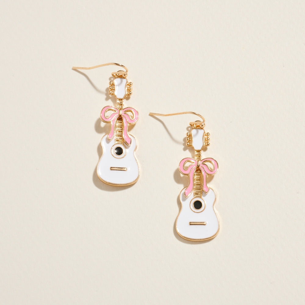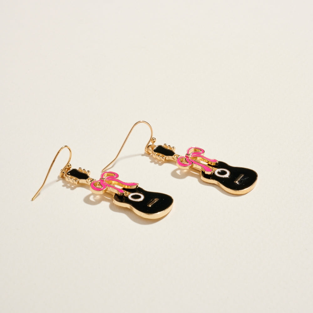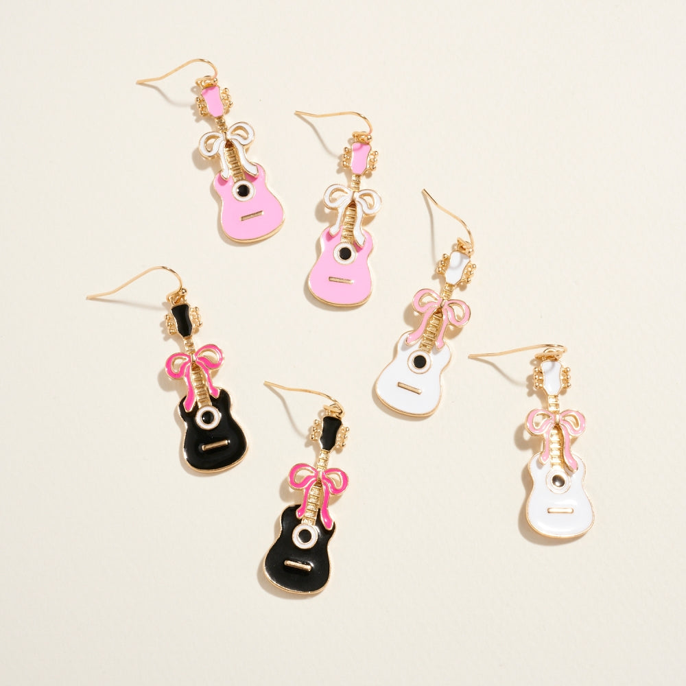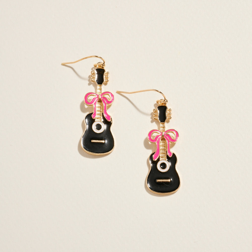 Add a touch of romance to your cowgirl look with these guitar bow earrings. A lightweight and stylish design for rodeo nights, concerts, or casual wear.