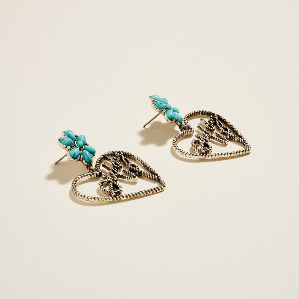 Giddy Up Heart Turquoise Boho Flower Post Earrings