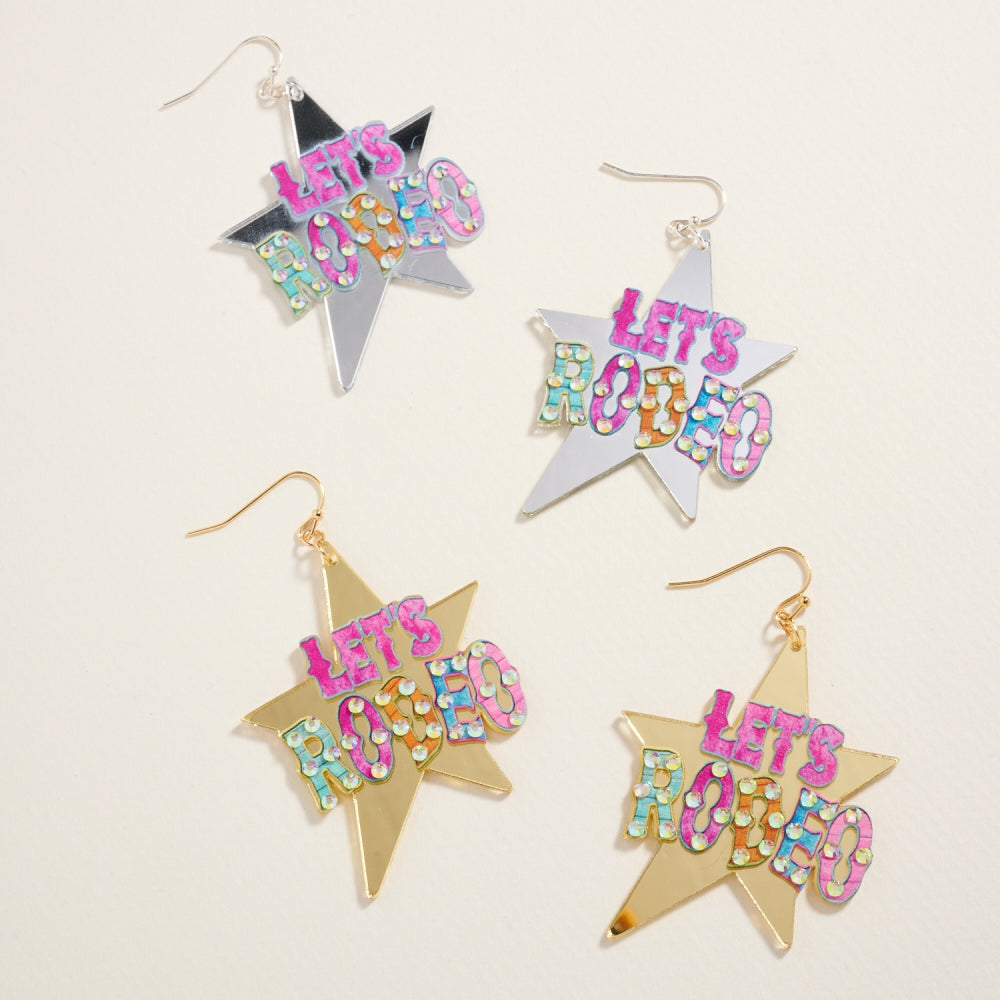 Lets Rodeo Star Shaped Rhinestone Hook Earrings