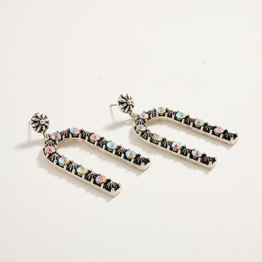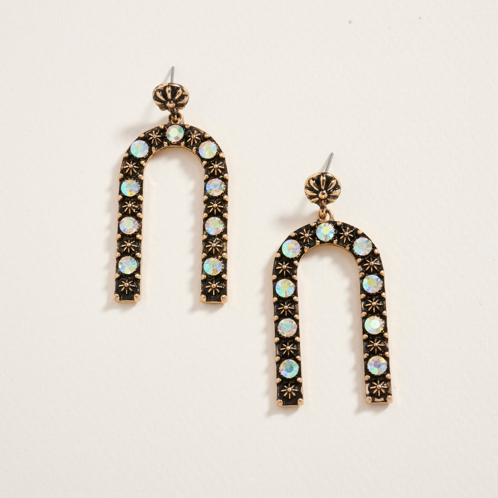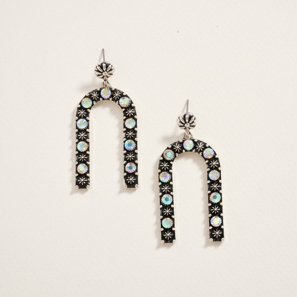 Rhinestone Arch Shaped Drop Post Earrings Jewelry