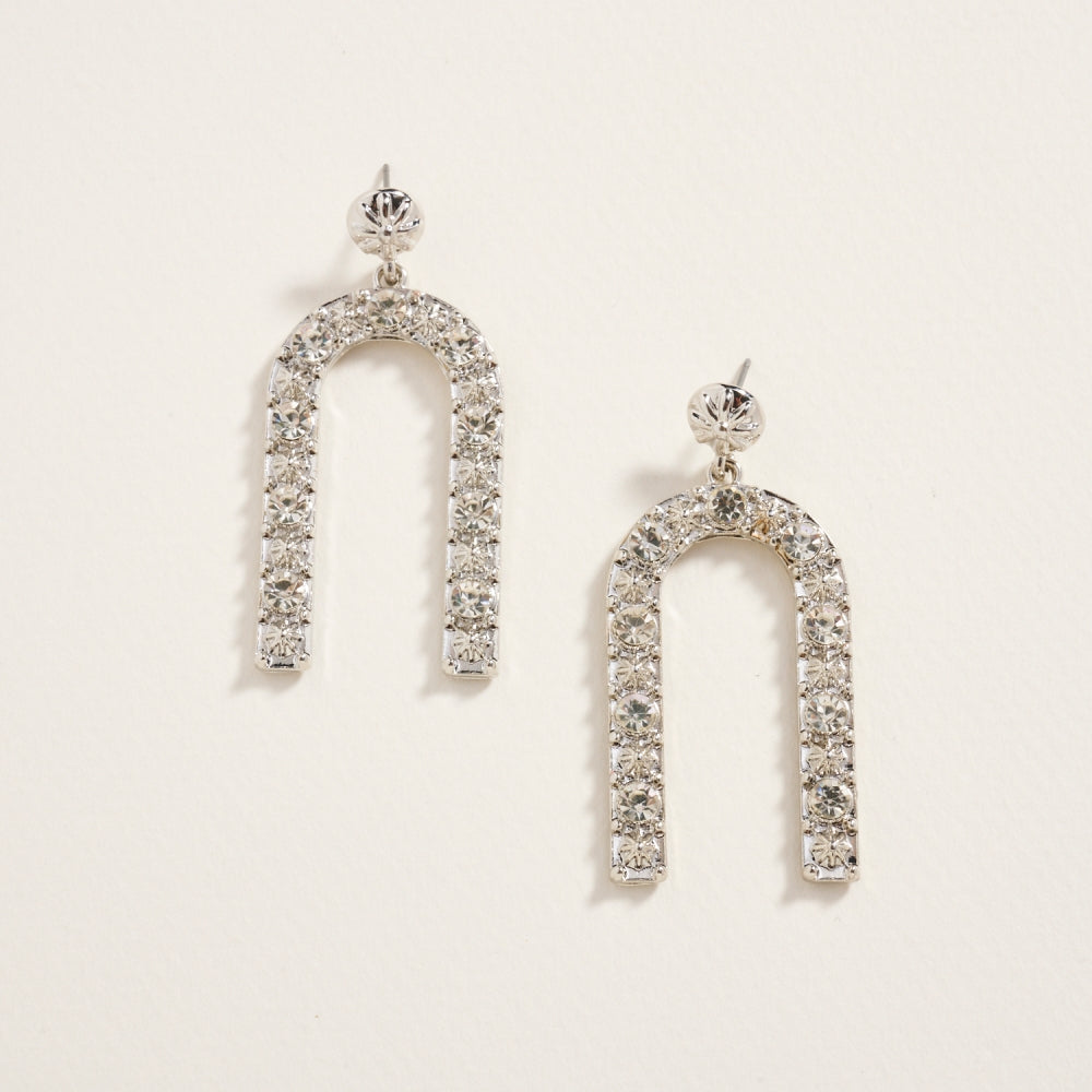 These arch-shaped post earrings are adorned with sparkling rhinestones that catch the light beautifully. A modern design that brings sophistication and shine to any outfit.