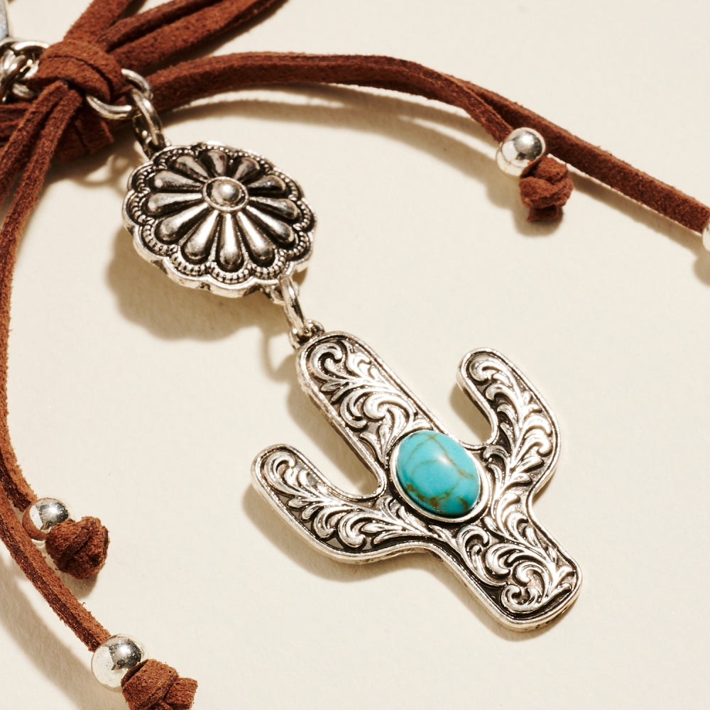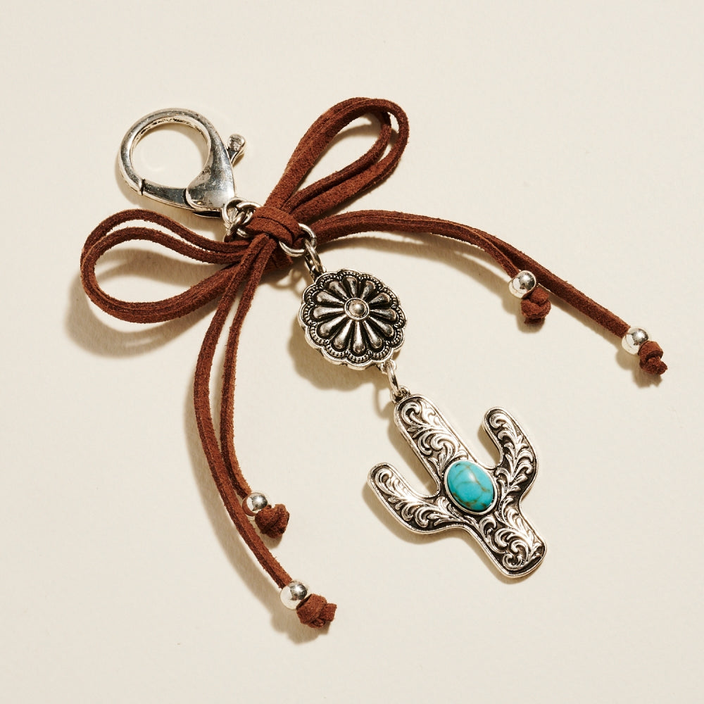 Semi Precious Boho Rodeo Cactus Bag Charm Keychain