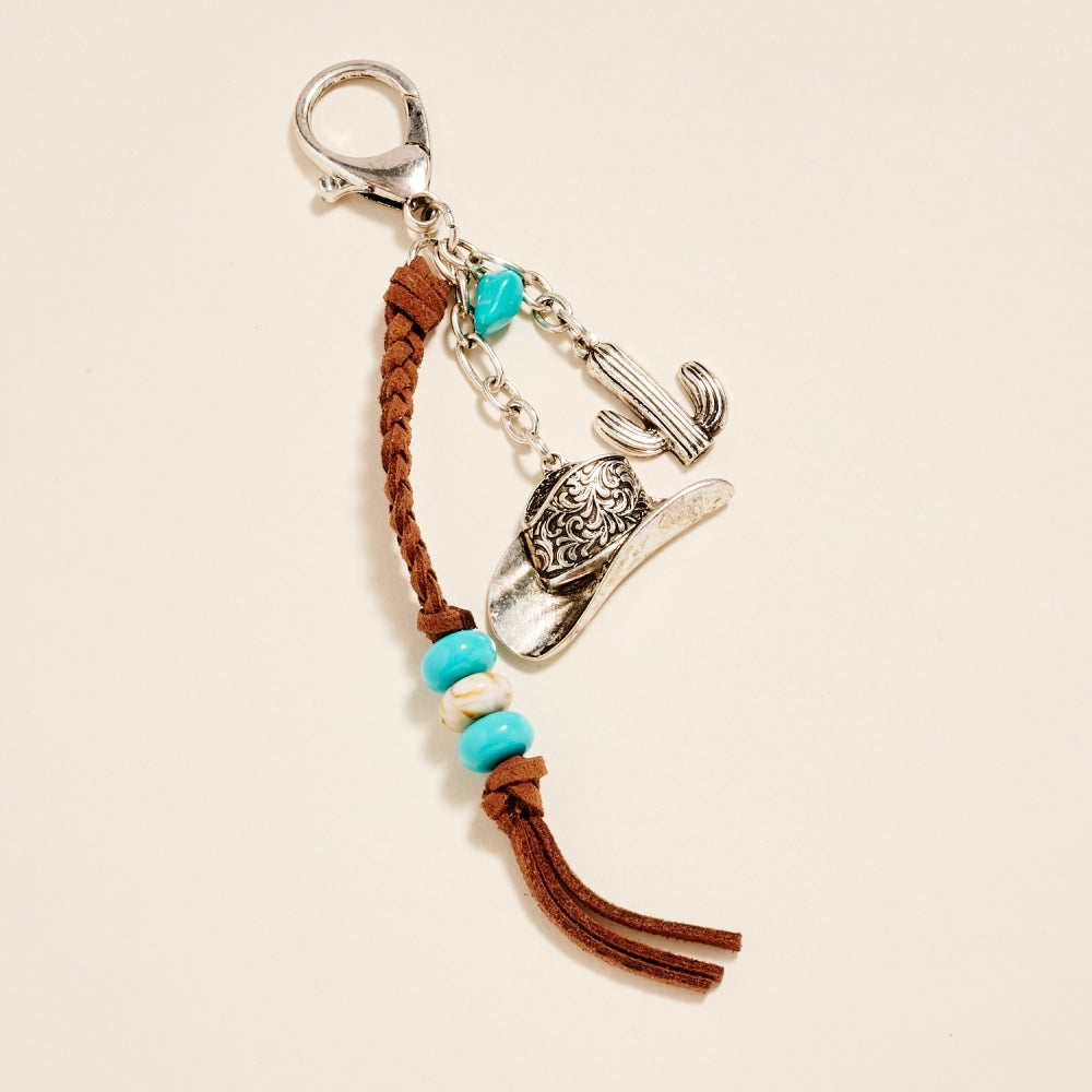 Semi Precious Cowgirl Rodeo Hat Bag Charm Keychain