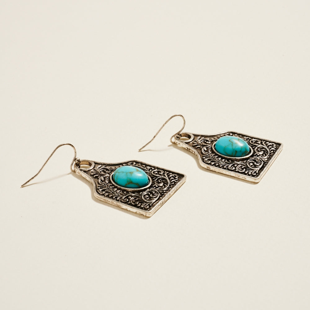 Semi Precious Stone Cow Tag Rodeo Hook Earrings