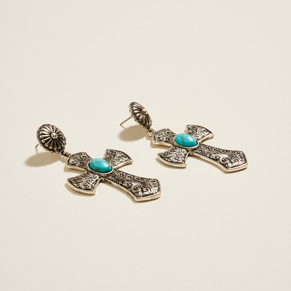 A mix of spiritual and bohemian influence, these cross earrings feature semi-precious stones for a naturally radiant finish and everyday versatility.