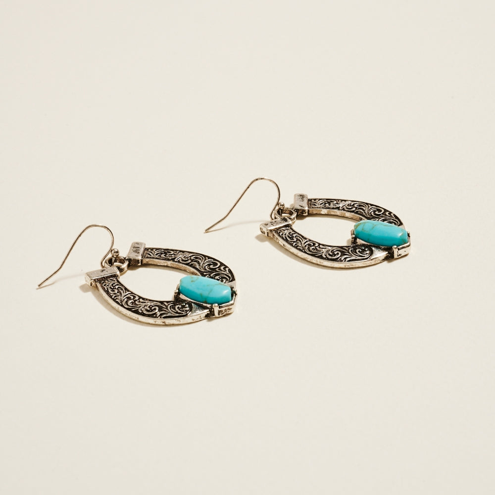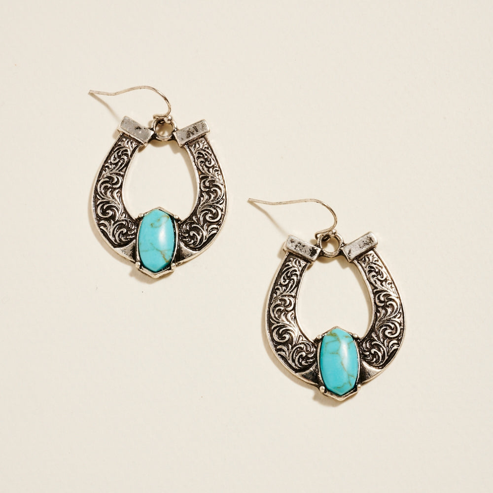A symbol of luck and style, these horseshoe hook earrings feature semi-precious stones that add a natural sparkle to your Western-inspired look.