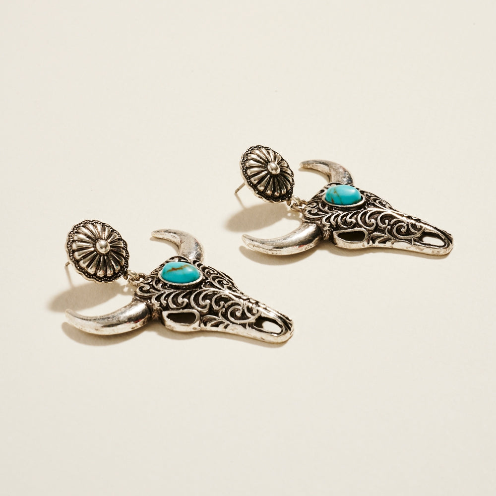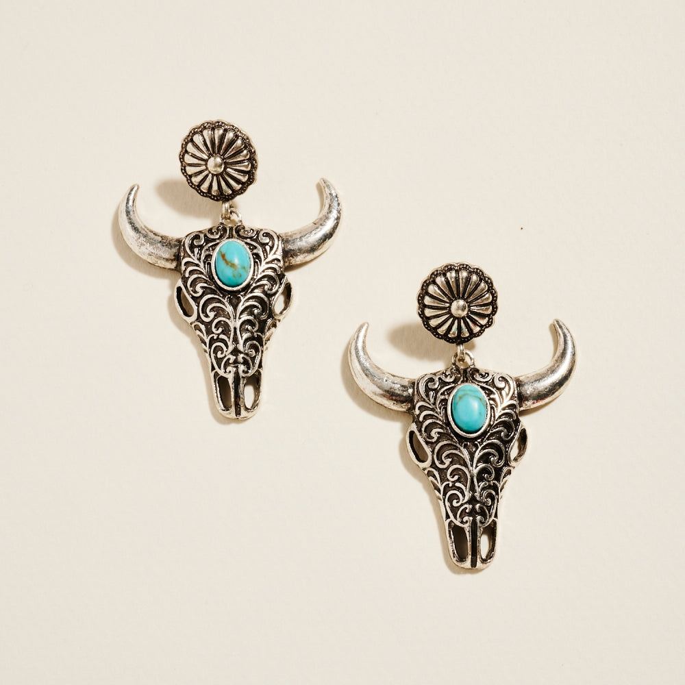 Western Boho Steer Longhorn Semi Precious Earrings