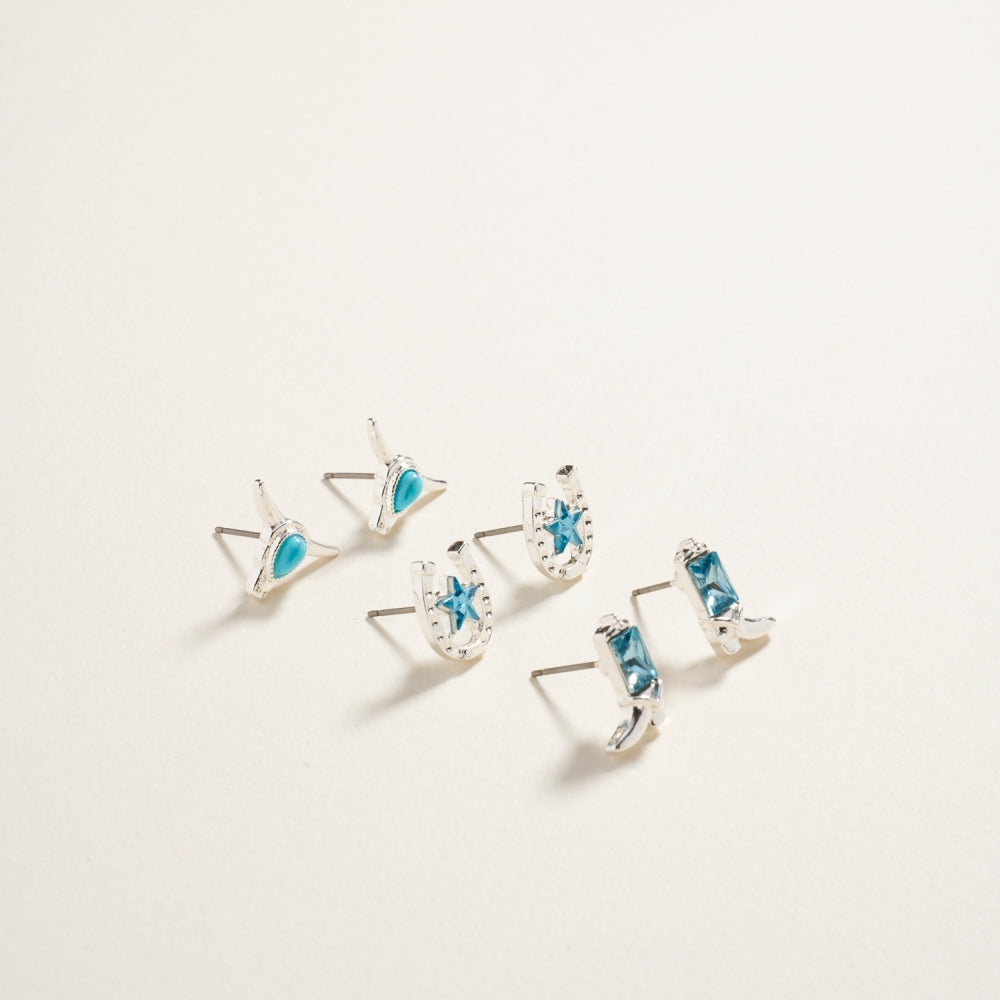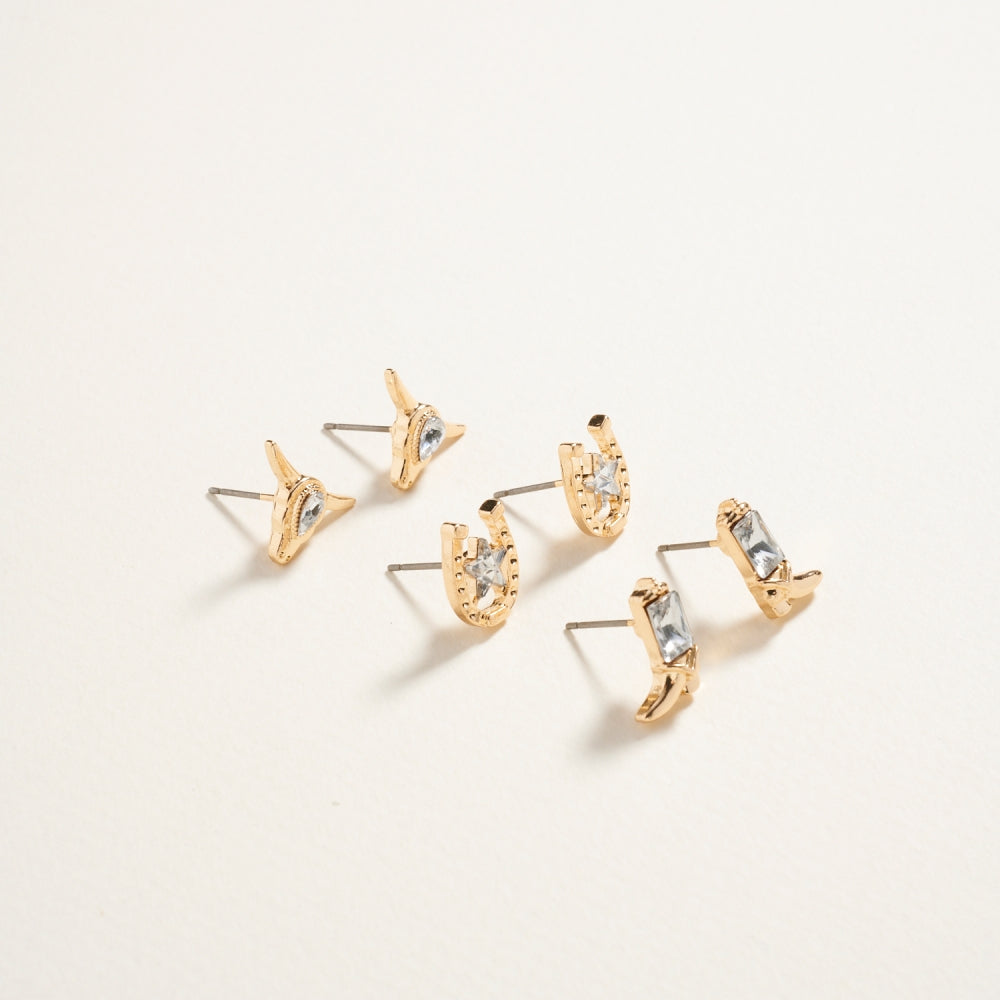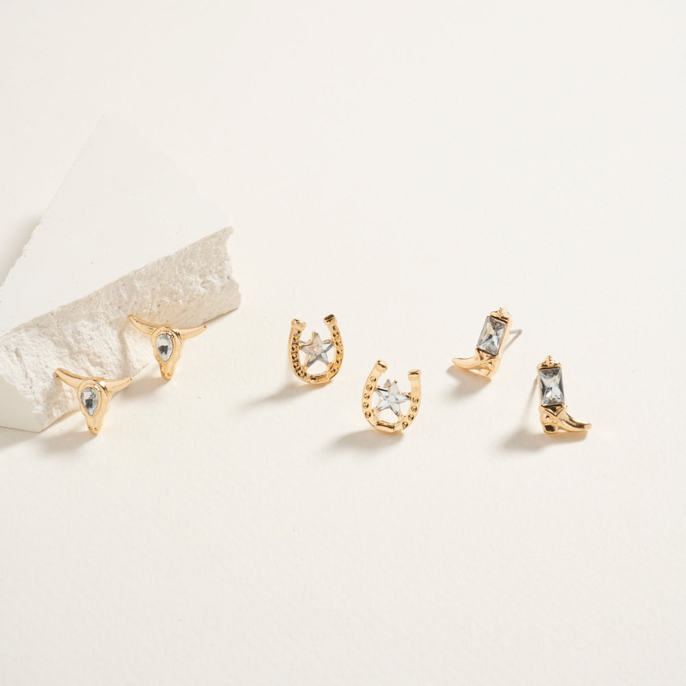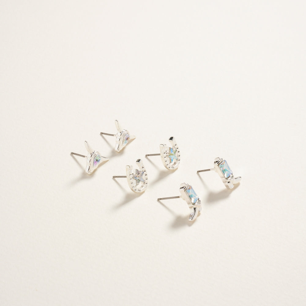Western Cowgirl Rhinestone 3PC Set Post Earrings