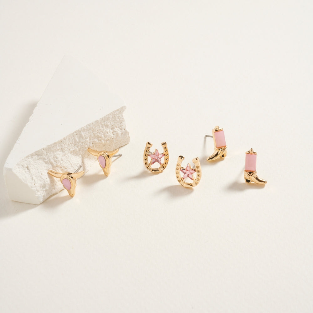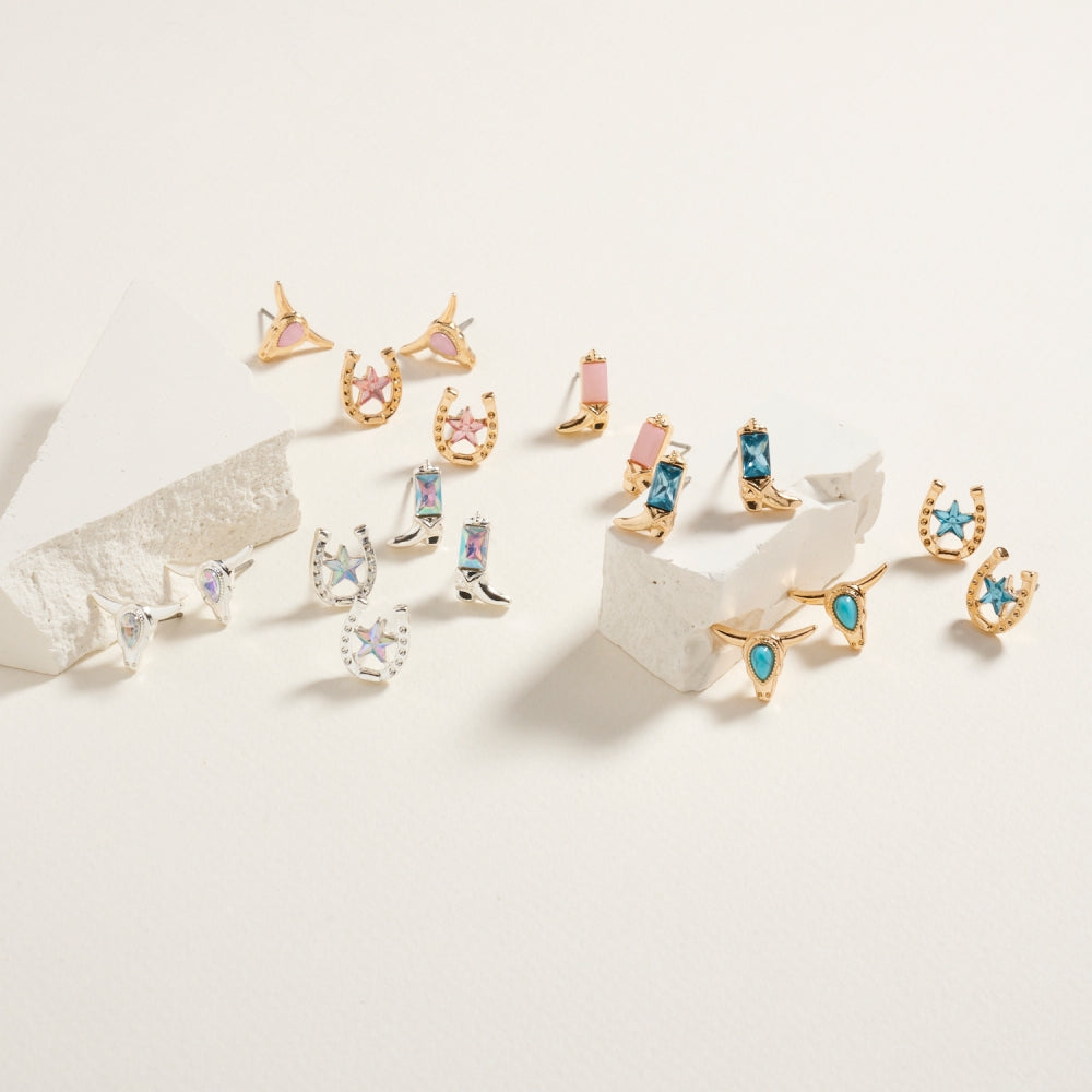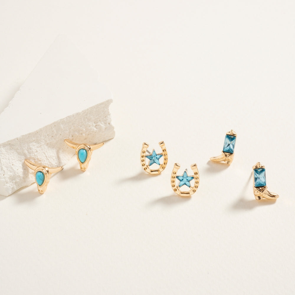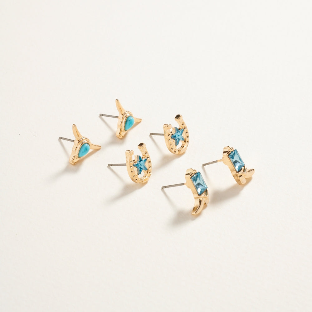Western Cowgirl Rhinestone 3PC Set Post Earrings