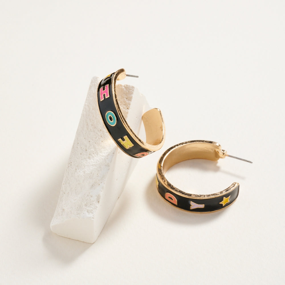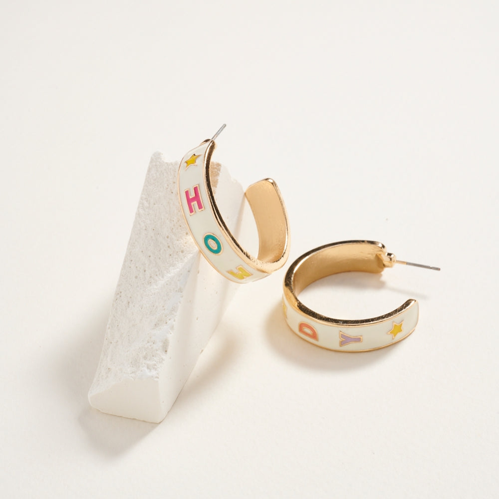 Say hello to bold style with these Howdy enamel hoop post earrings. Featuring a playful enamel finish, they add a pop of color and personality to any outfit.