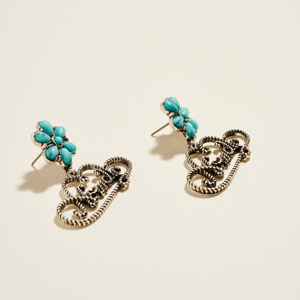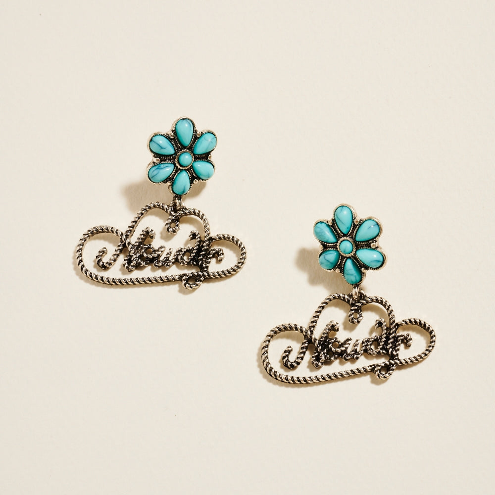 Show off your Western charm with these turquoise flower post earrings featuring a playful howdy hat design. A fun and stylish accessory for rodeo lovers and boho enthusiasts alike.