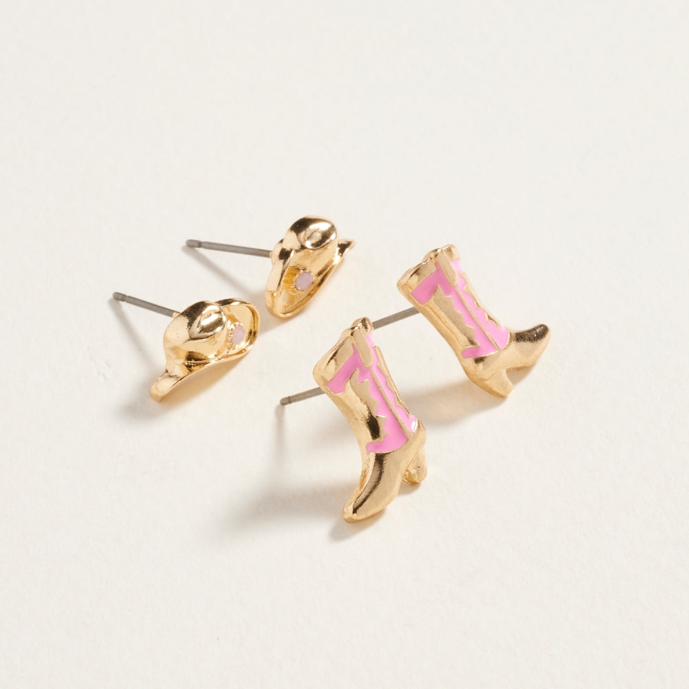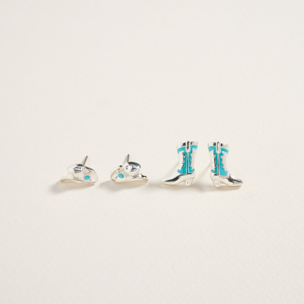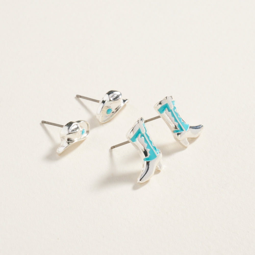 Western Rodeo Hat Boot Enamel 2 Set Post Earrings