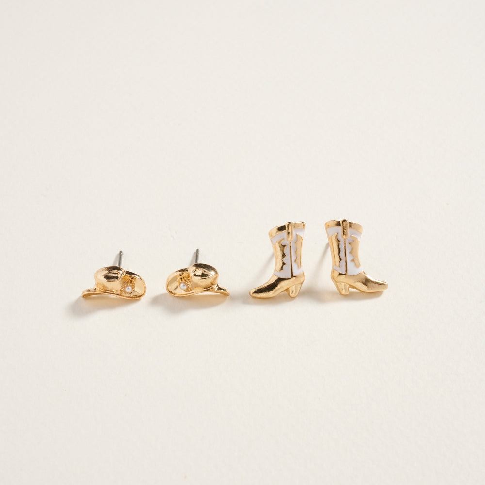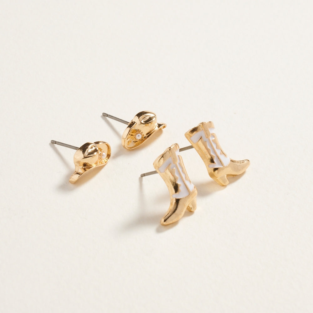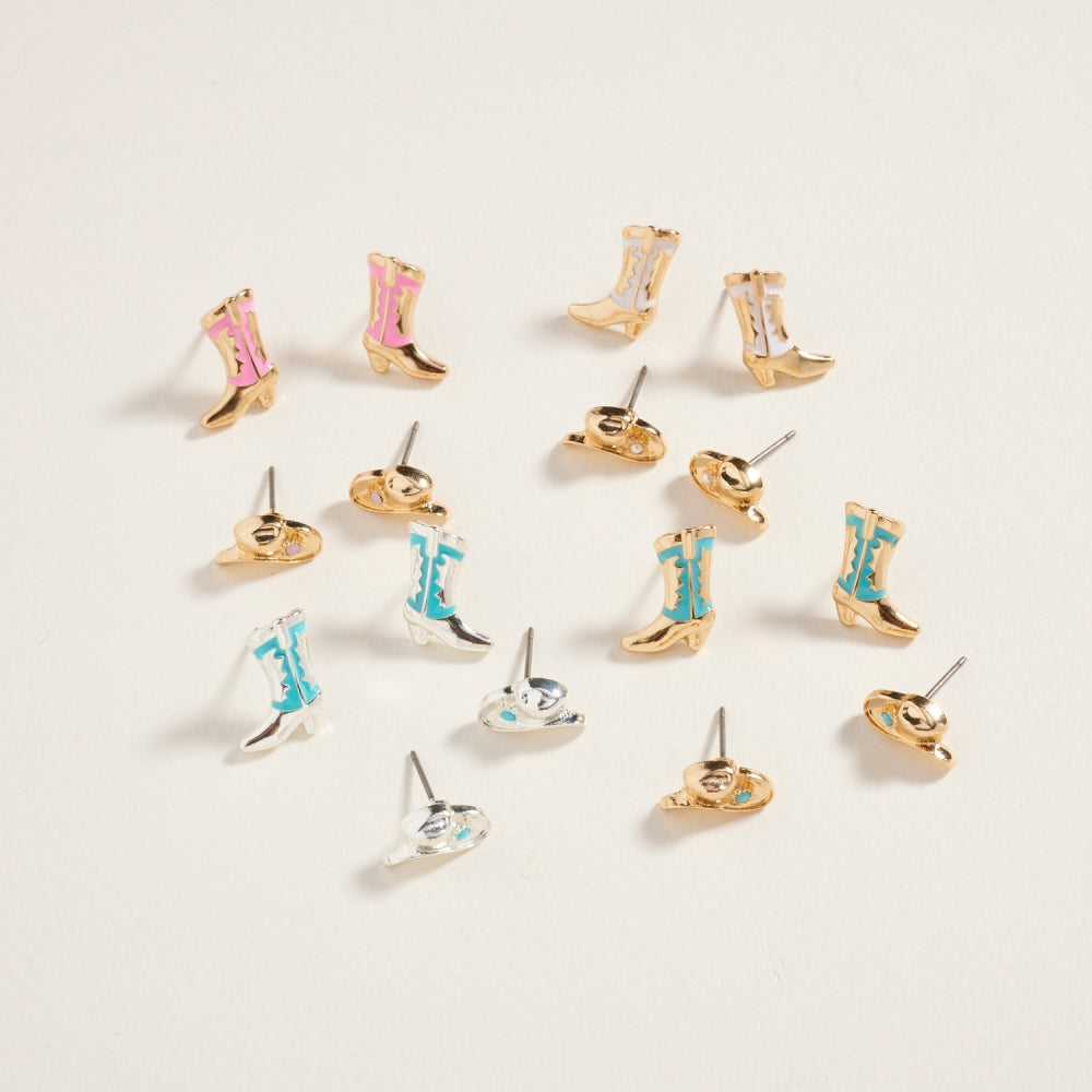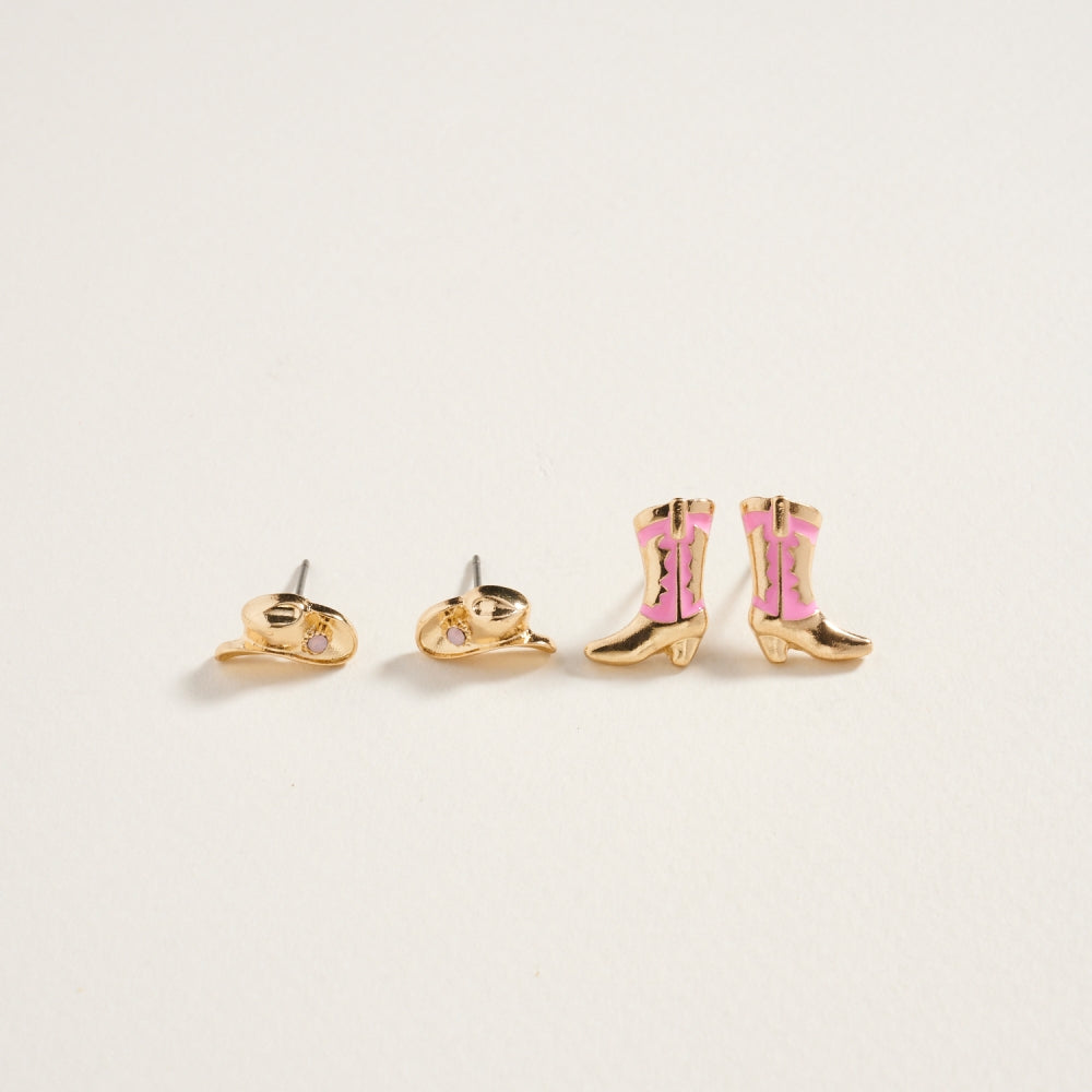 Western Rodeo Hat Boot Enamel 2 Set Post Earrings