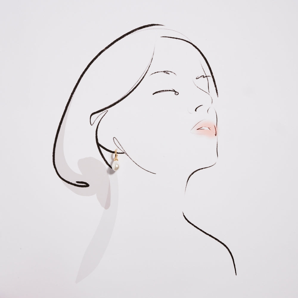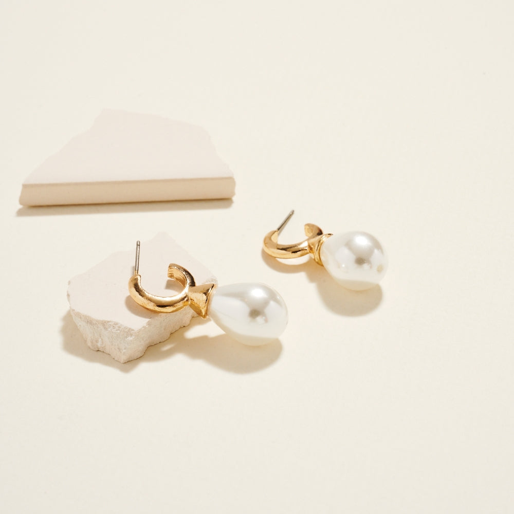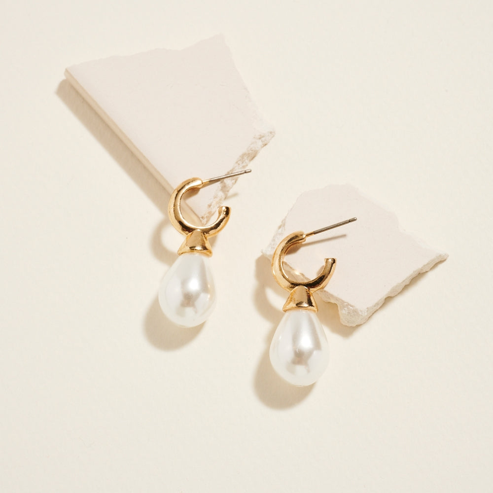1.25 In Tear Drop Shaped Pearl Hoop Post Earrings