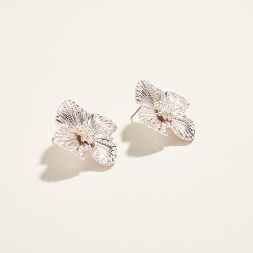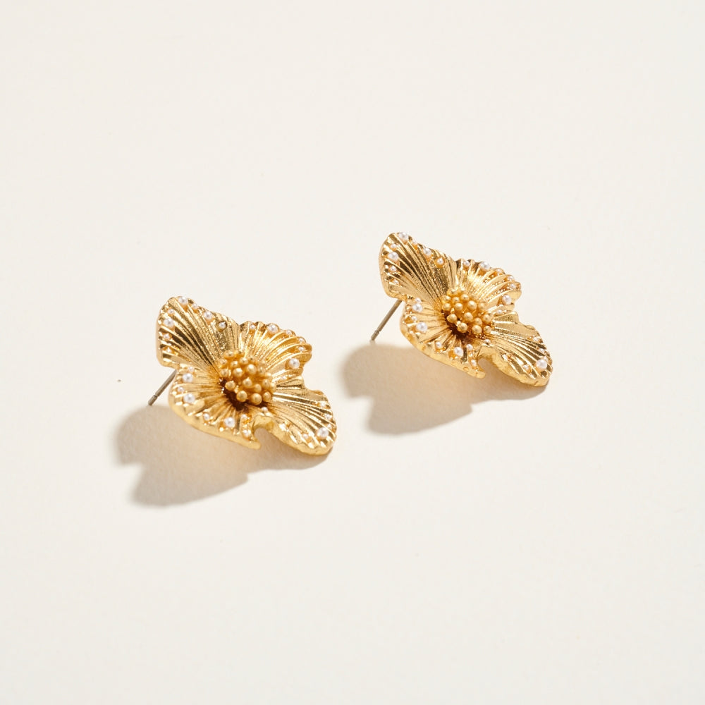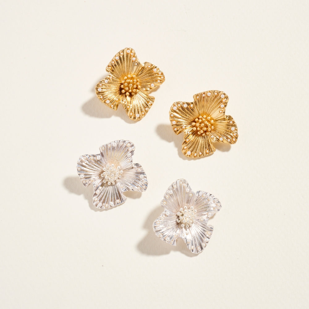 These pearl-centered flower earrings bring a soft, romantic touch to your look. The polished finish and petite size make them ideal for everyday elegance or special moments.