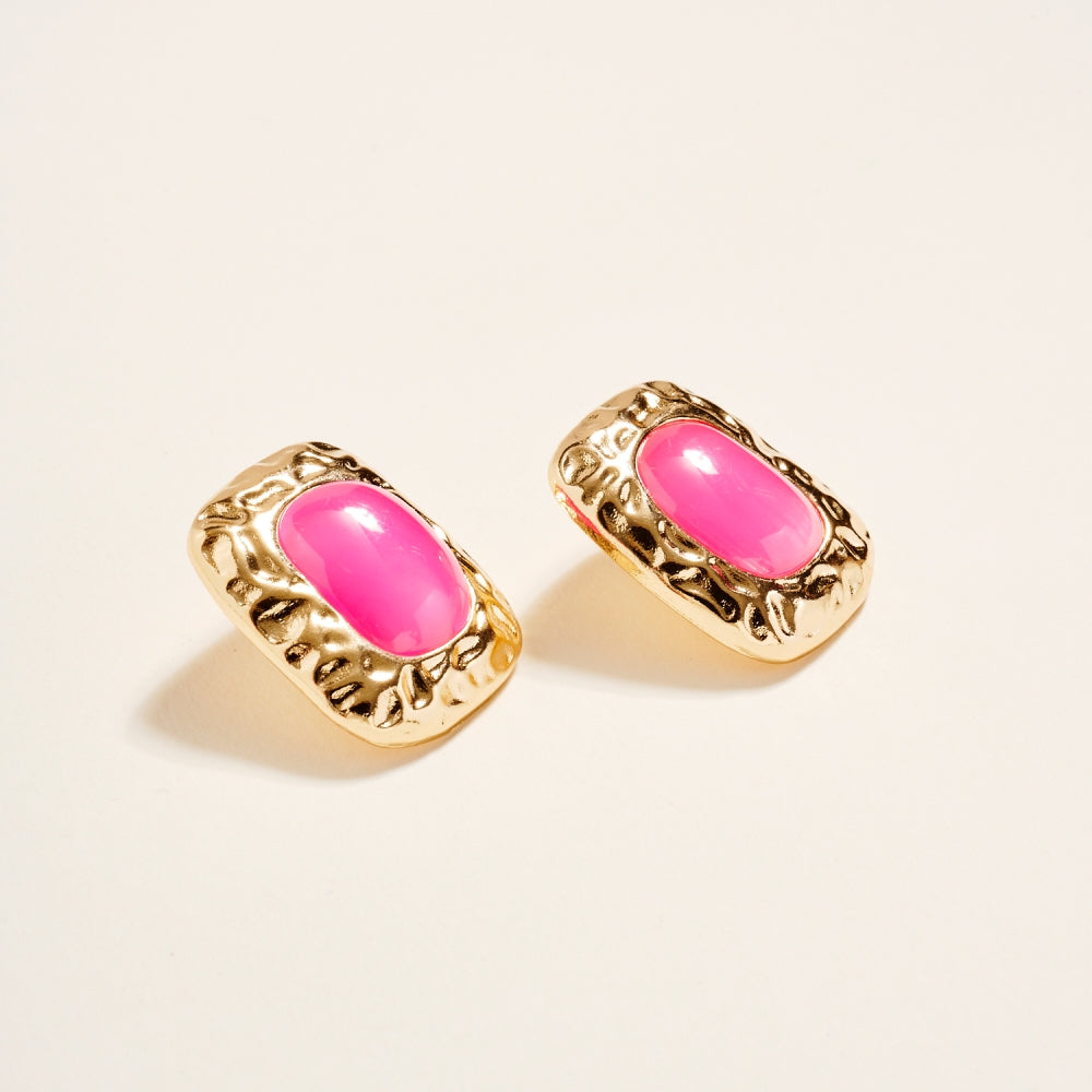 1.25 Inch Metal Frame Vintage Resin Post Earrings