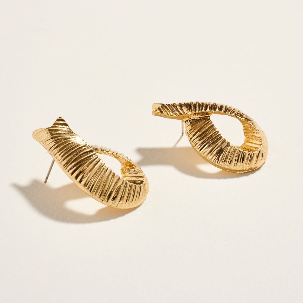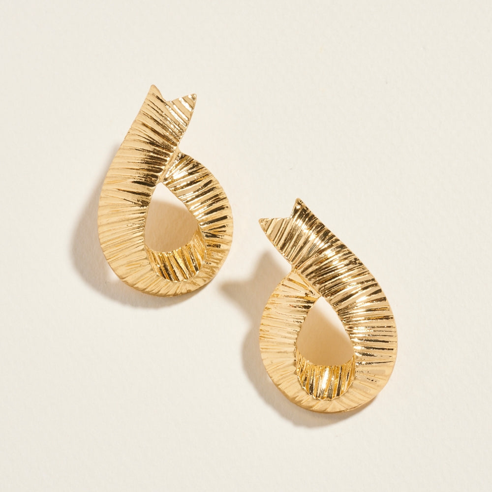 1.75 In Metal Ribbed Ribbon Post Earrings Jewelry