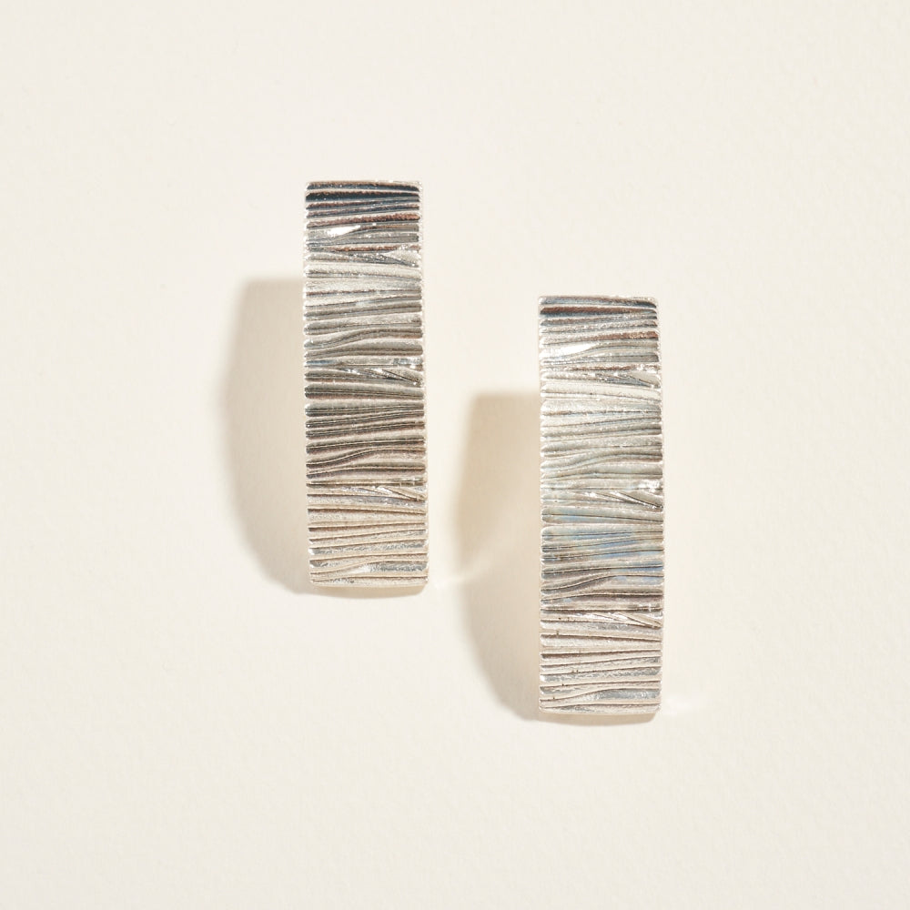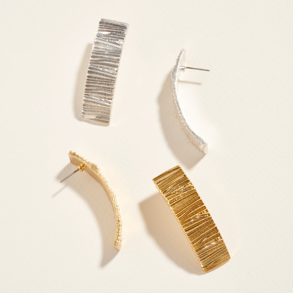 Crafted with a ribbed ruffle texture, these metal bar post earrings bring sophistication with an edge. Perfect for adding polished shine to both everyday and dressy looks.