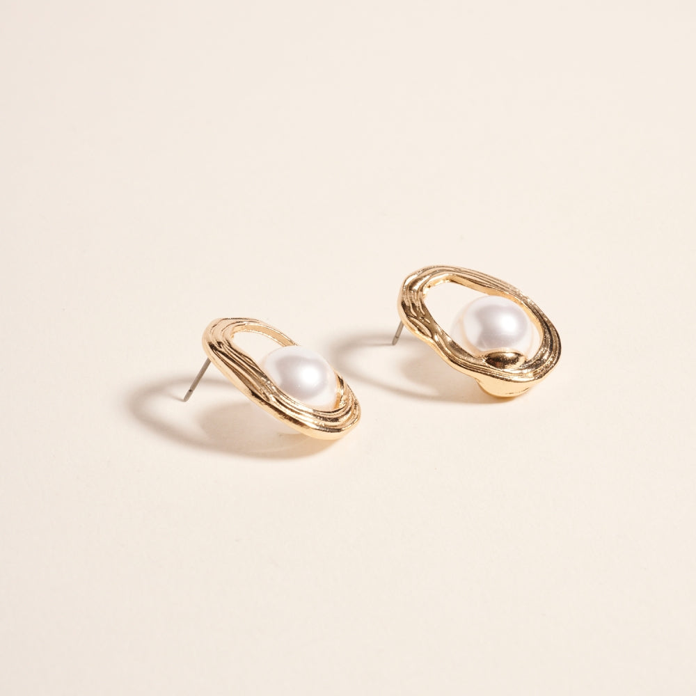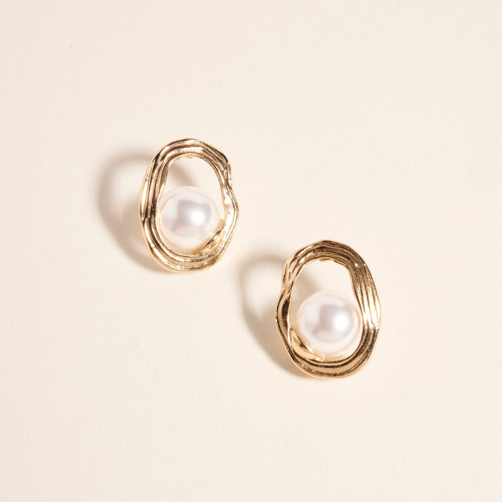 1 Inch Vintage Metal Frame Round Pearl Earrings