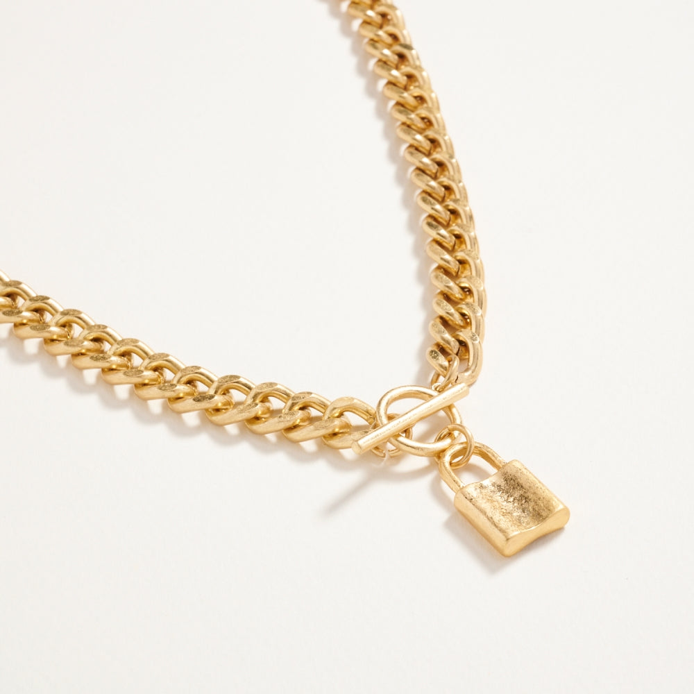 17 Inch Lock Chain Toggle Clasp Chain Necklace