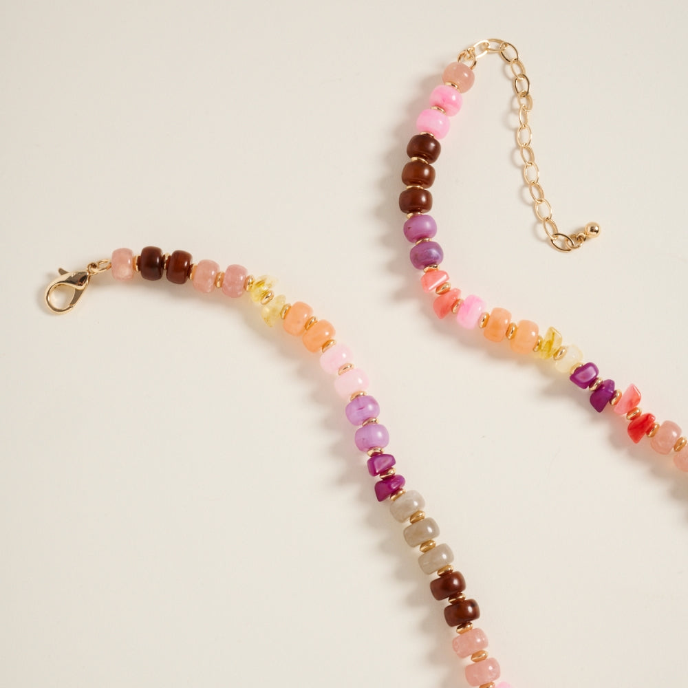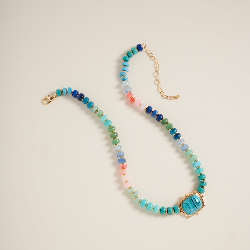 A beautiful blend of marbled and ombre tones, this 17-inch beaded necklace features a charming pendant that adds a refined, modern touch to any outfit.