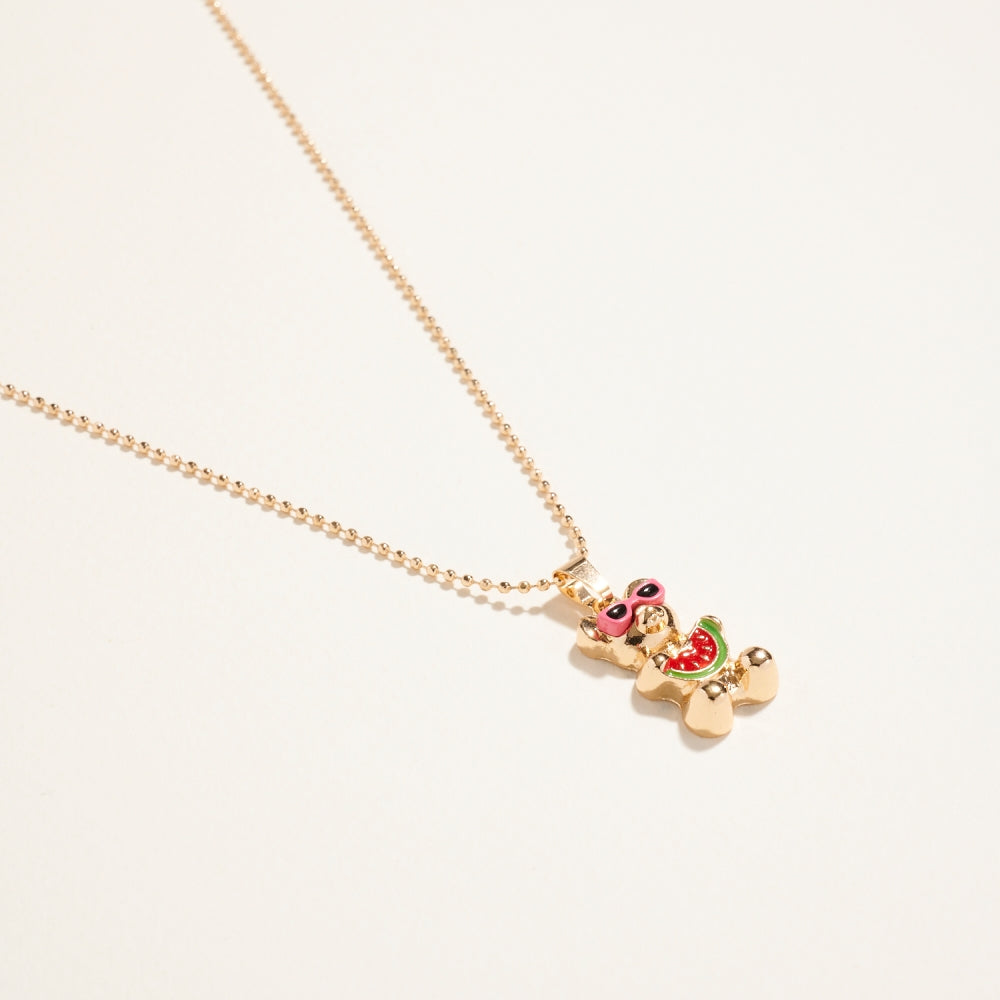 This fun metal necklace features a bear in sunglasses for the ultimate summer vibe. A perfect blend of cute and cool that brings a lighthearted accent to any outfit.