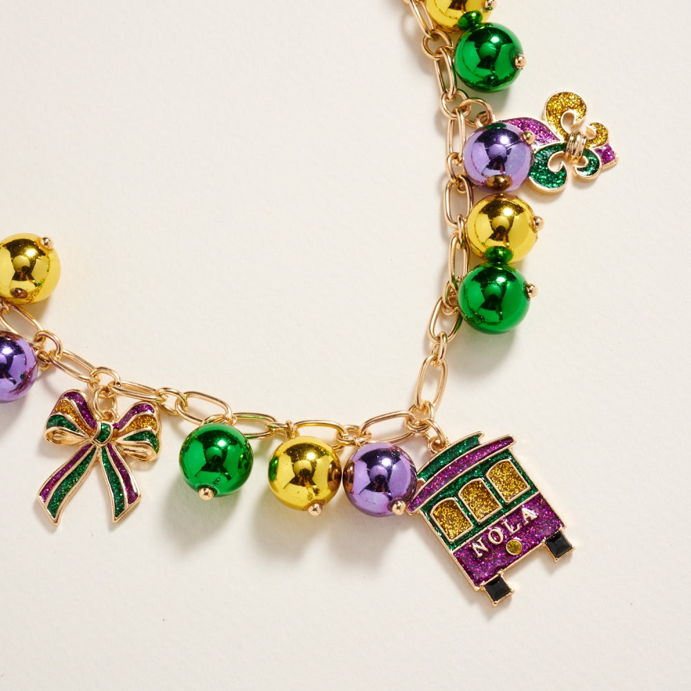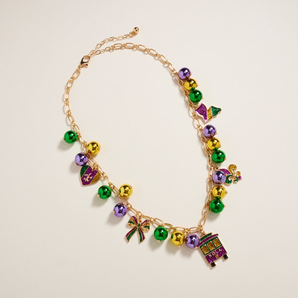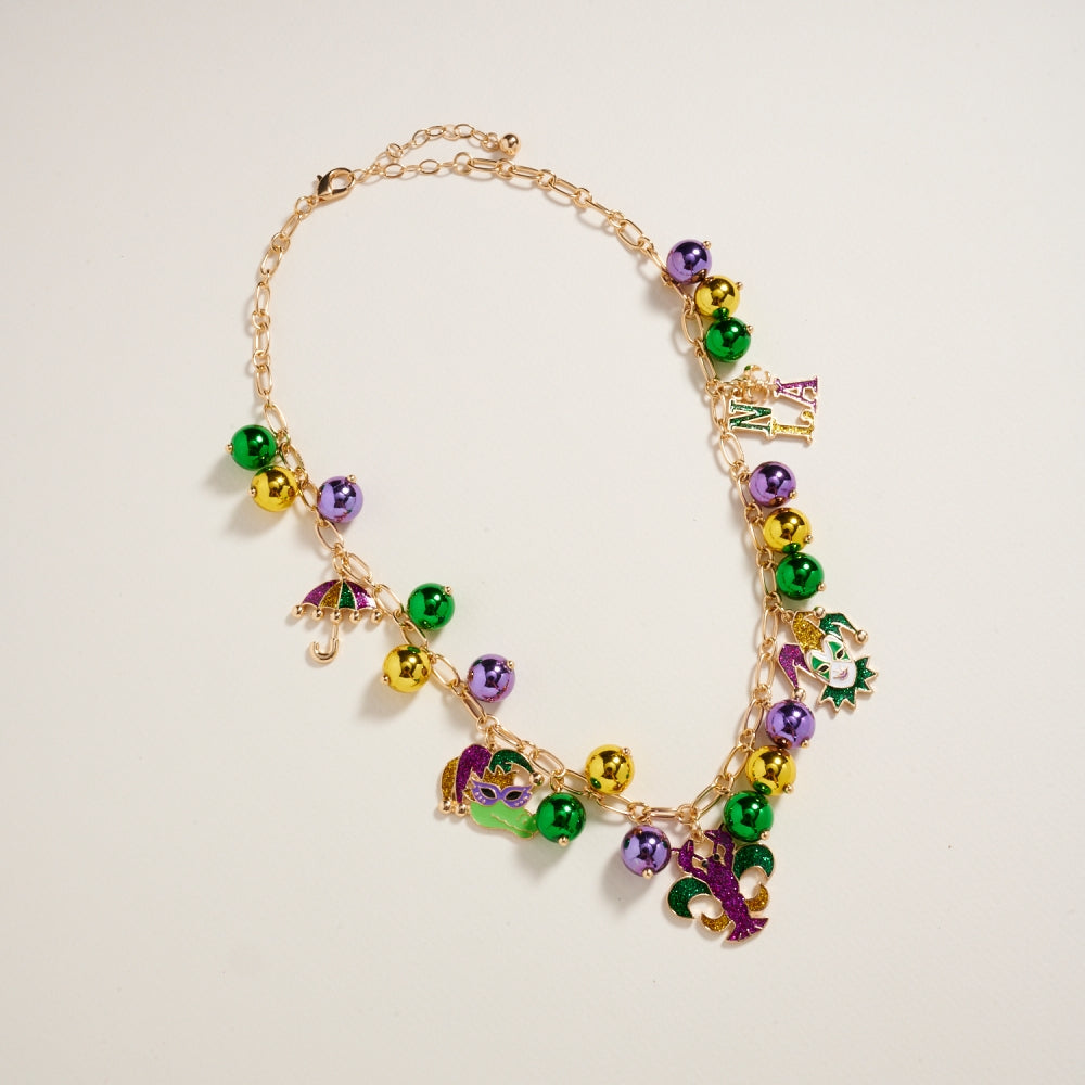 18 Inch Mixed Mardi Gras Charm Bead Chain Necklace