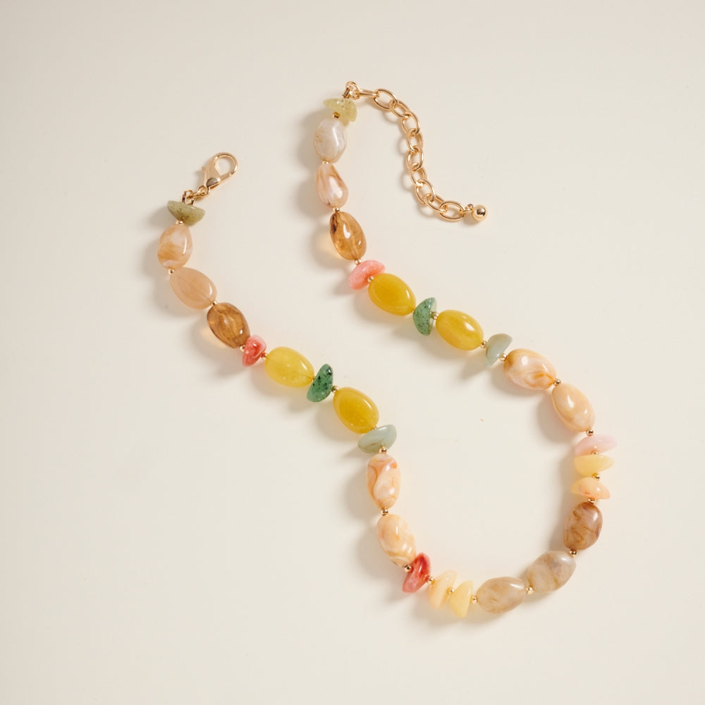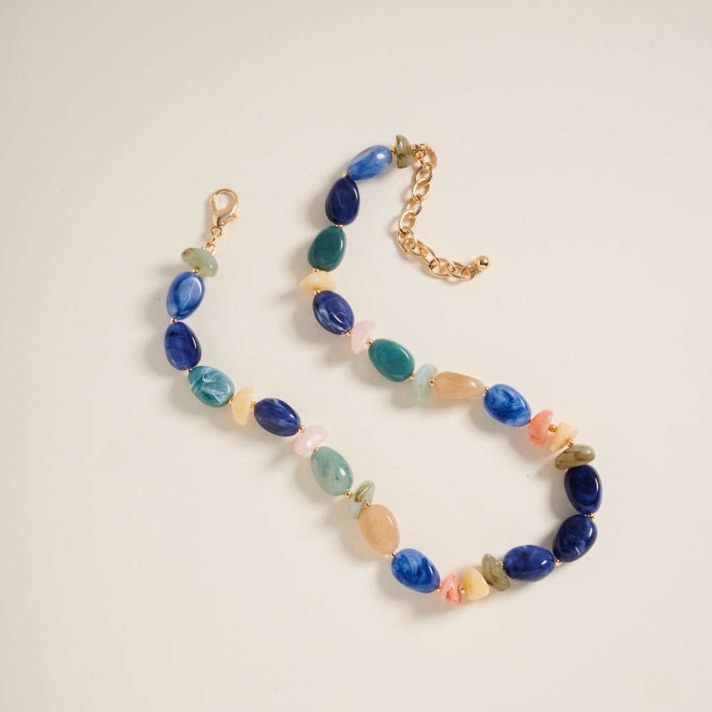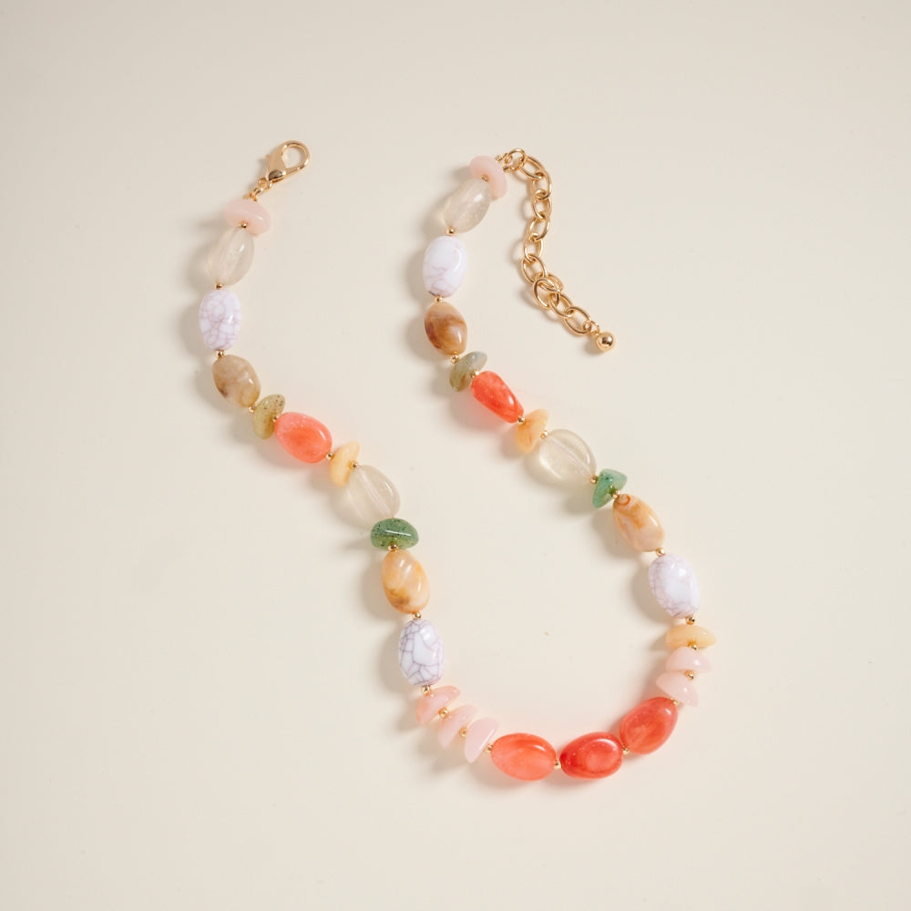 Elevate your everyday look with this 18-inch necklace featuring natural marbled beads in a soft ombre gradient. A lightweight, neutral staple for effortless layering.