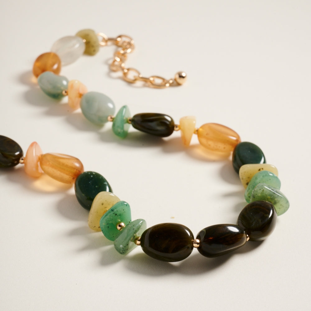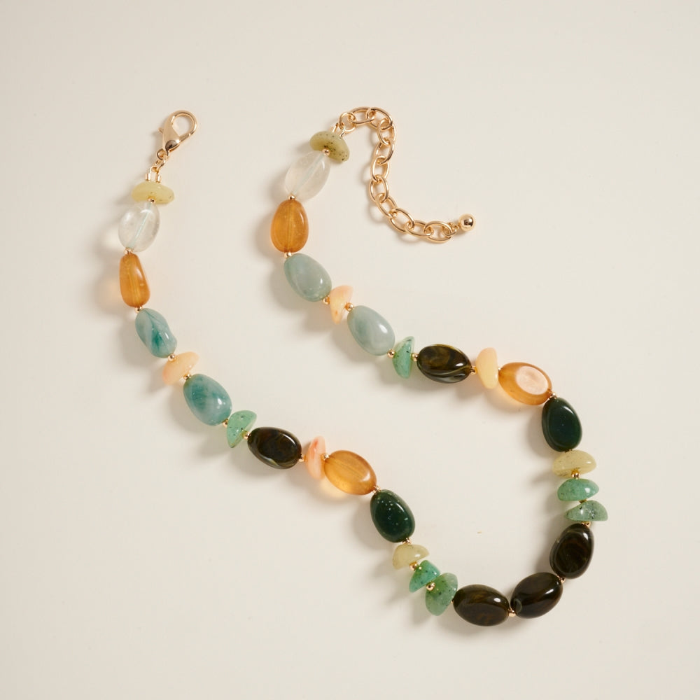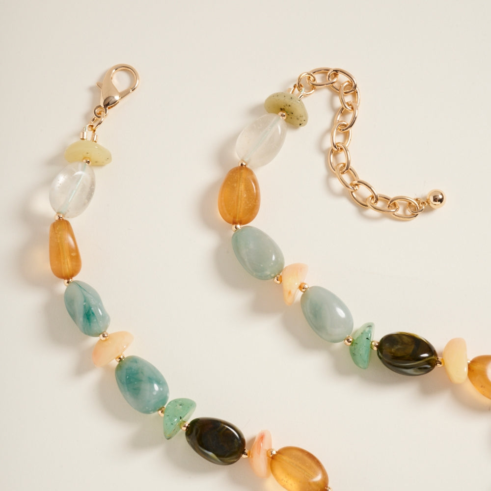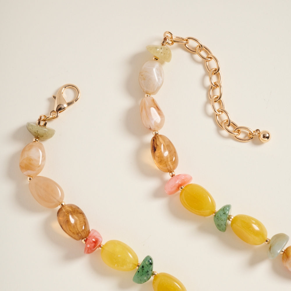 Elevate your everyday look with this 18-inch necklace featuring natural marbled beads in a soft ombre gradient. A lightweight, neutral staple for effortless layering.