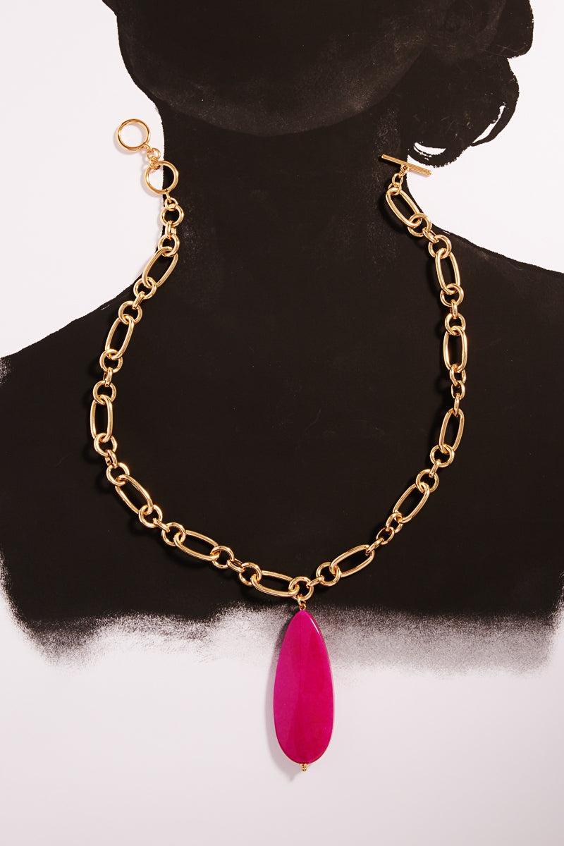 18K Gold Plate Brass Chain Teardrop Stone Necklace