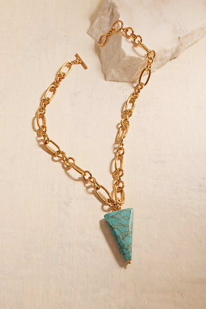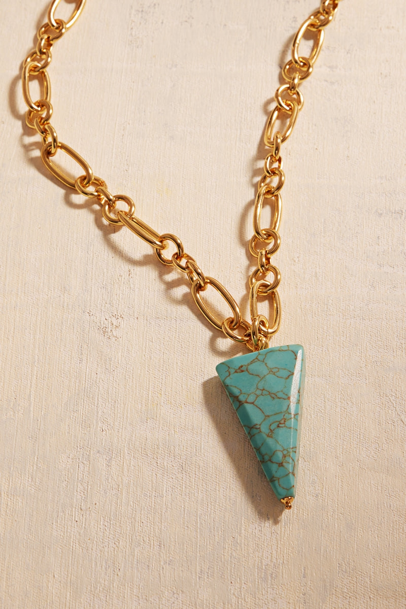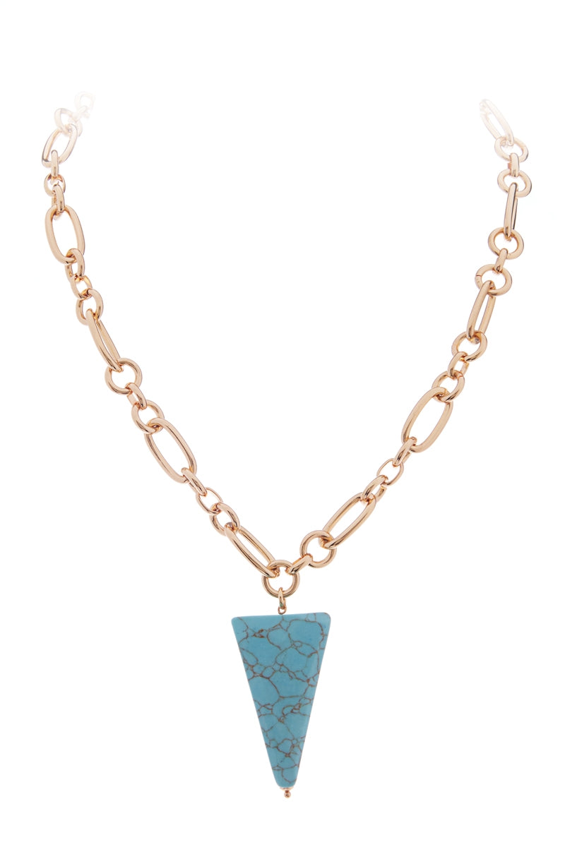 18K Gold Plate Brass Chain Triangle Stone Necklace
