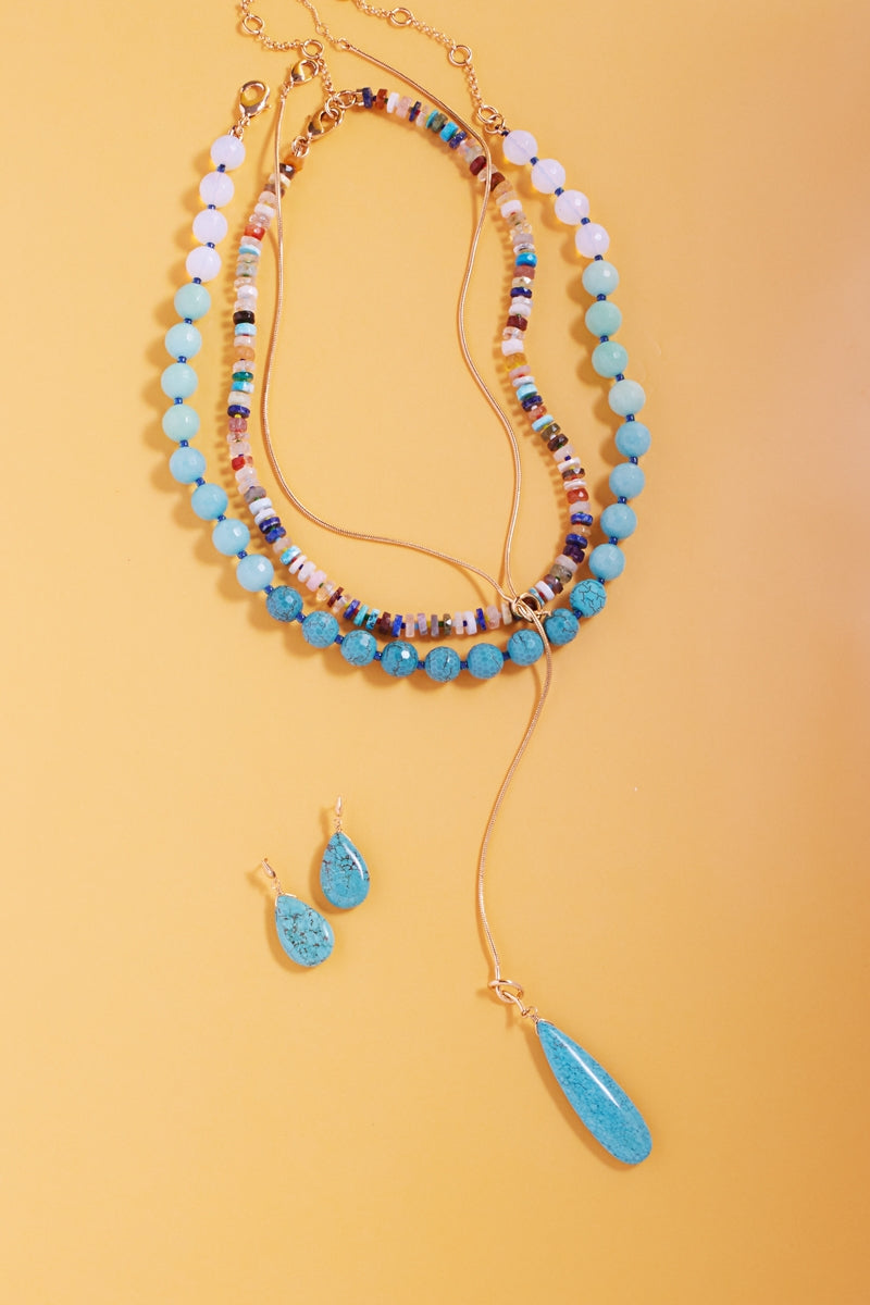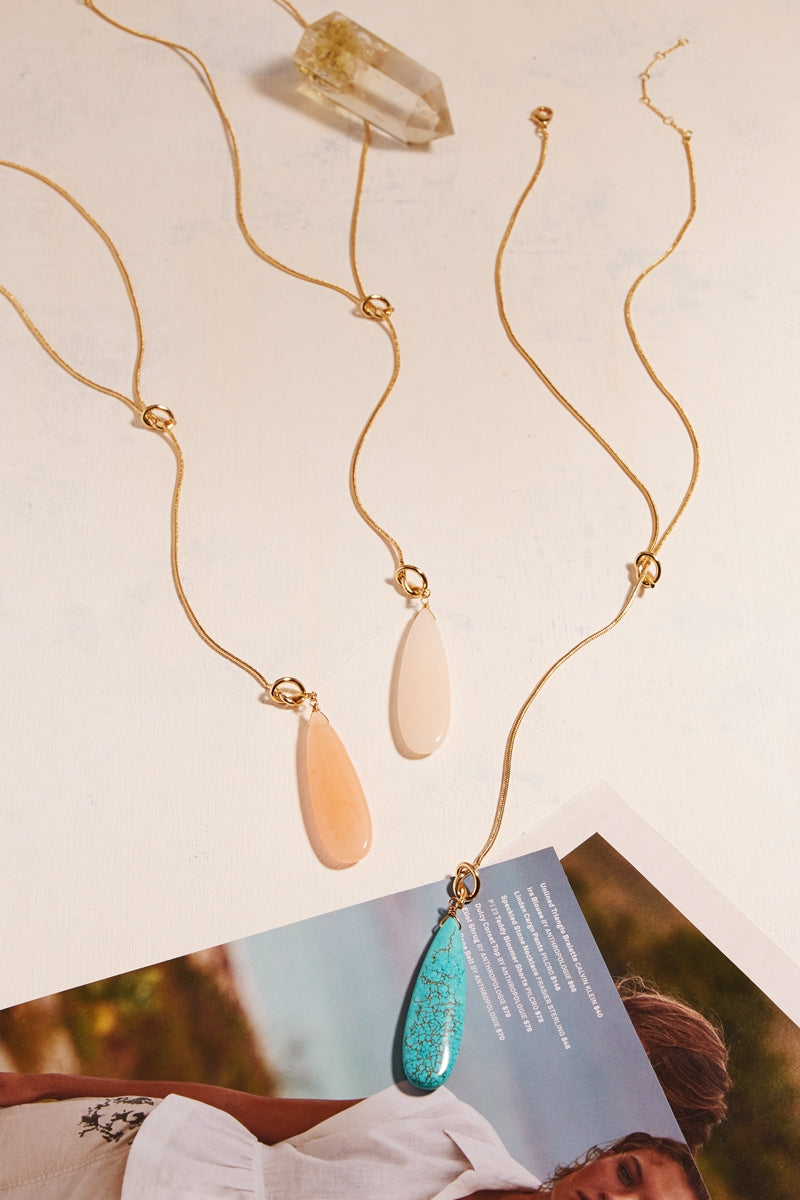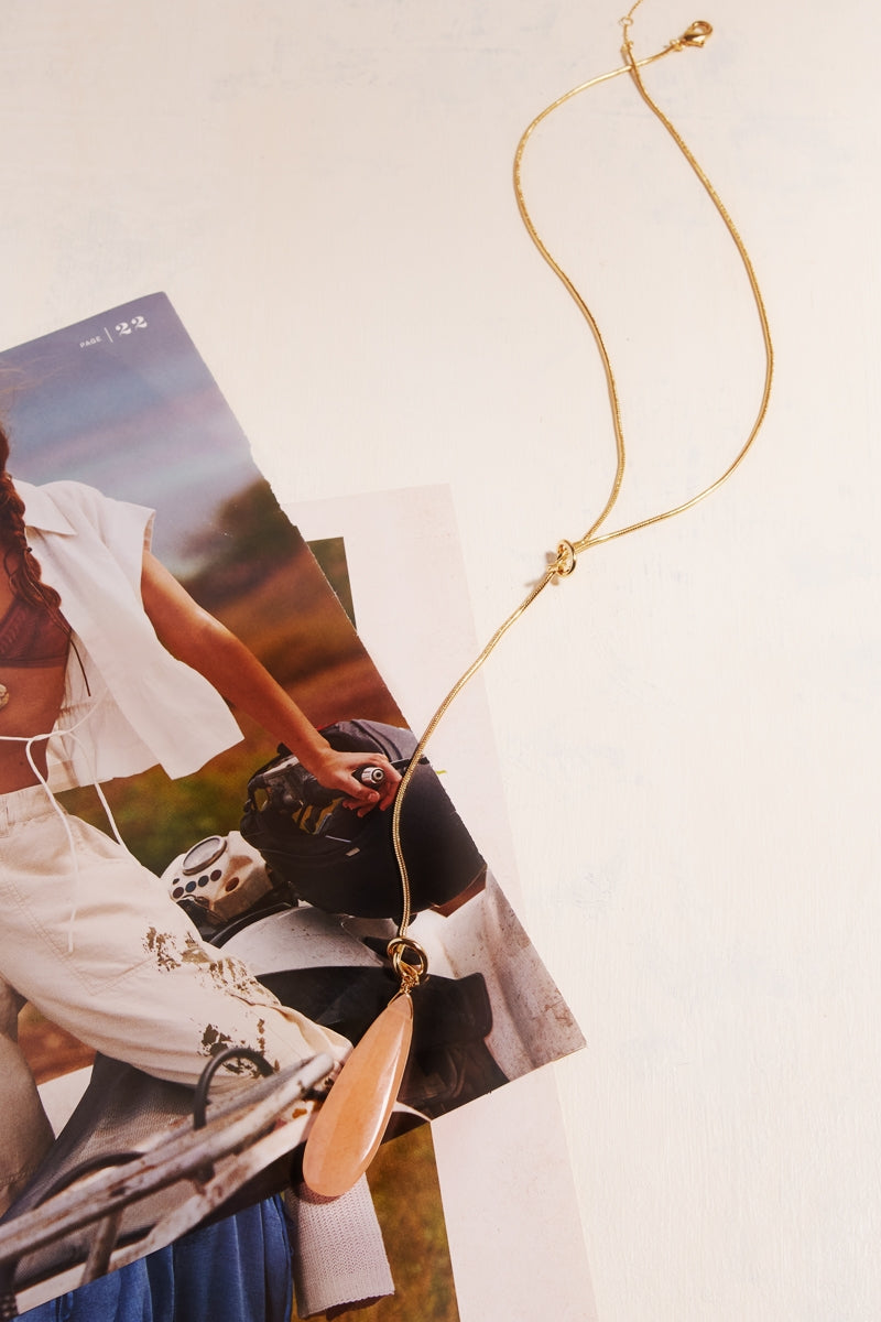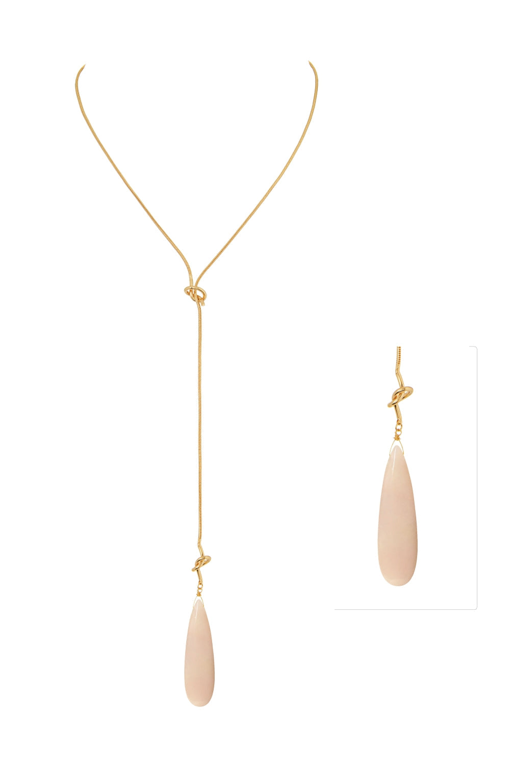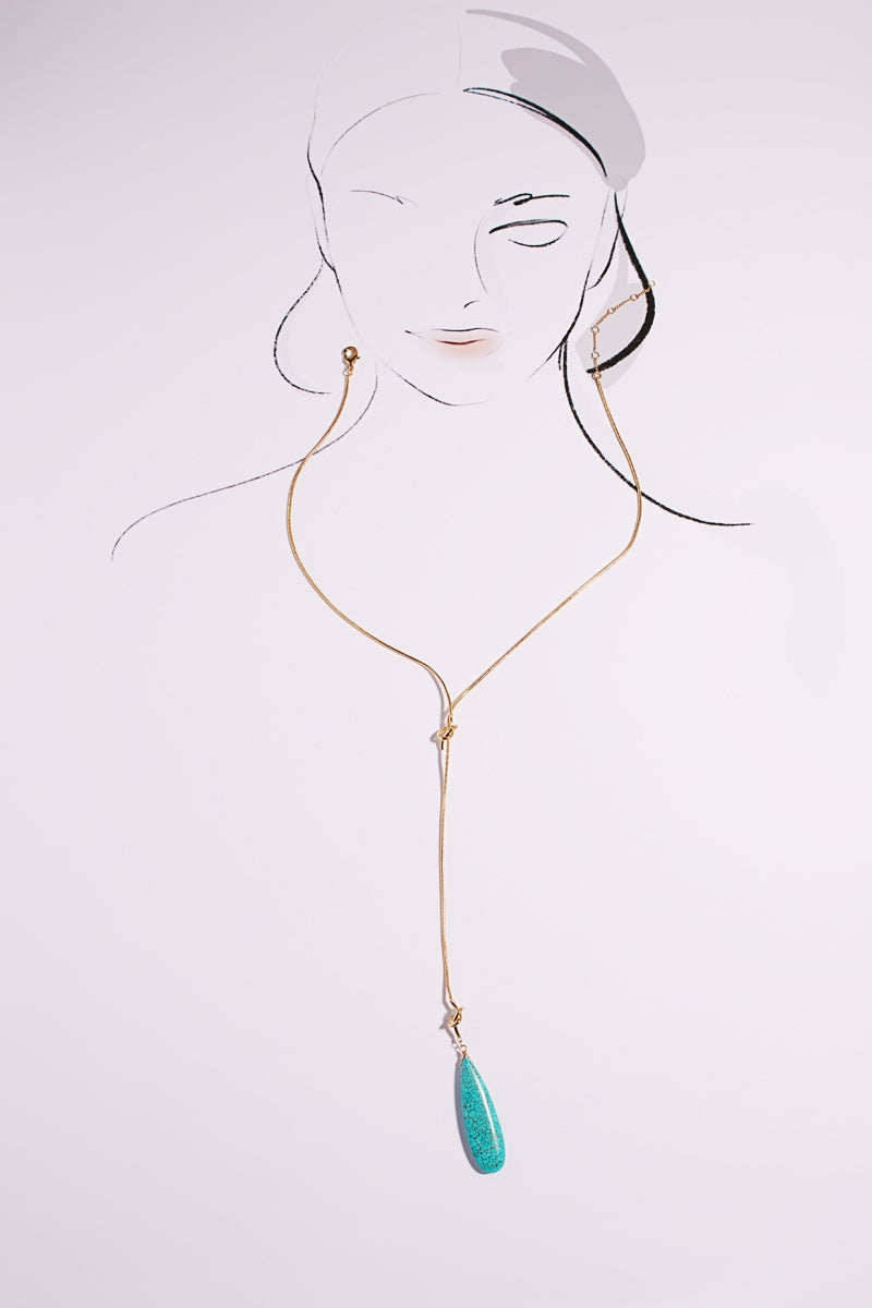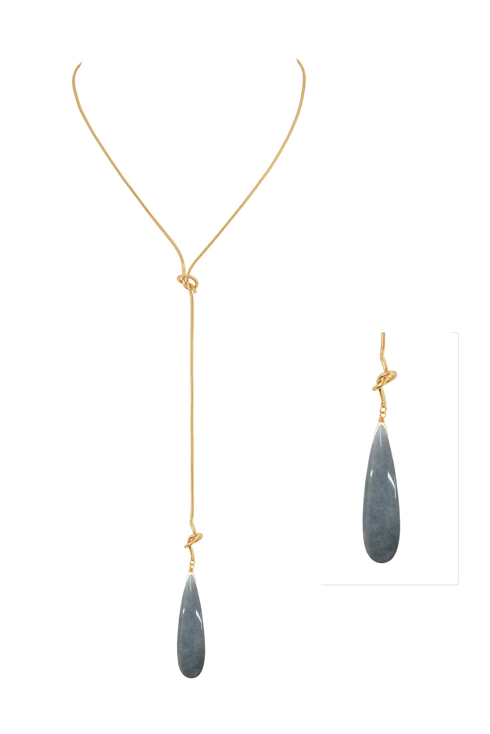 18K Gold Plate Long Teardrop Stone Yshape Necklace