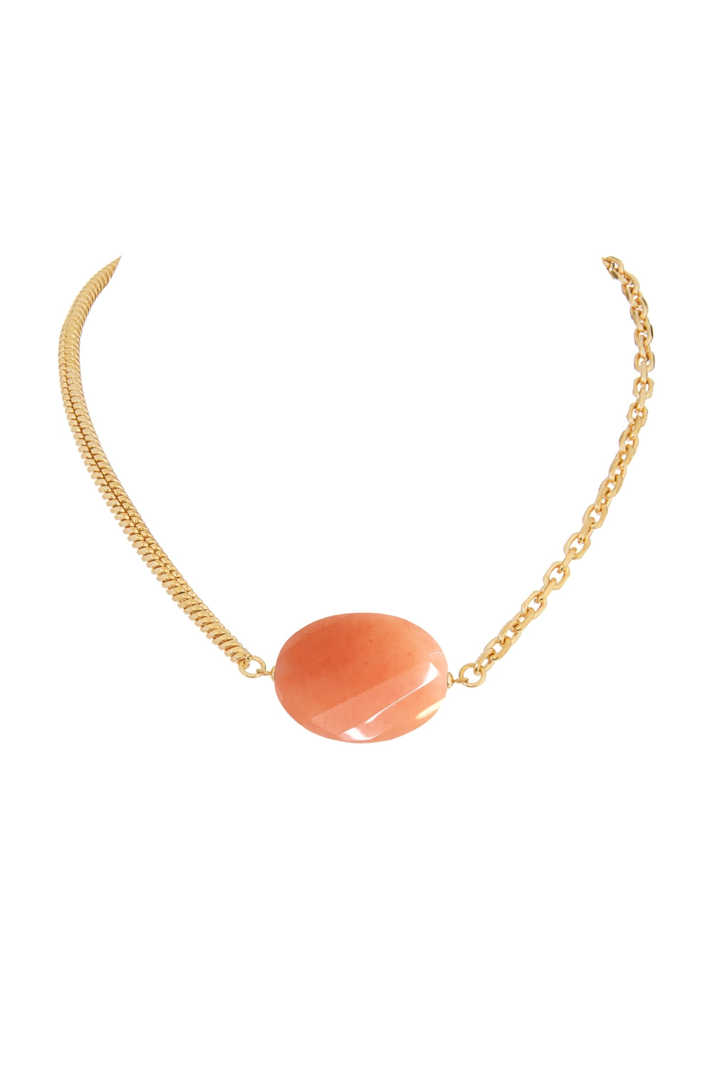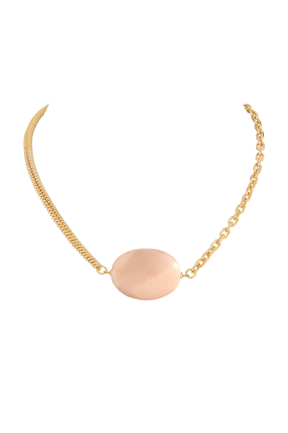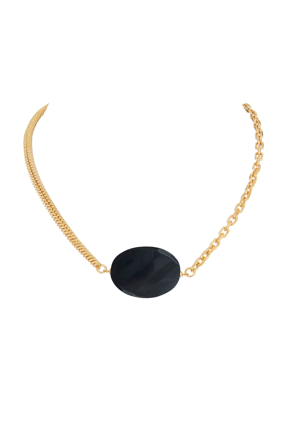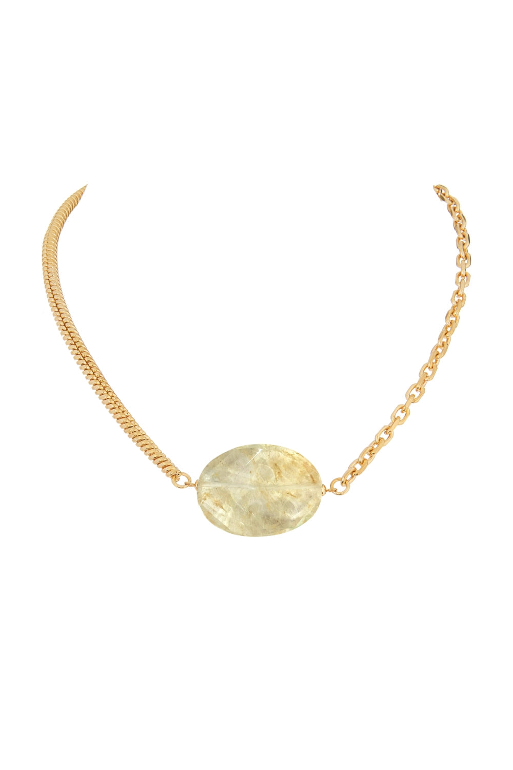 18K Gold Plated Chain Saved Oval Stone Necklace