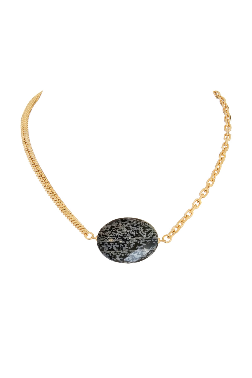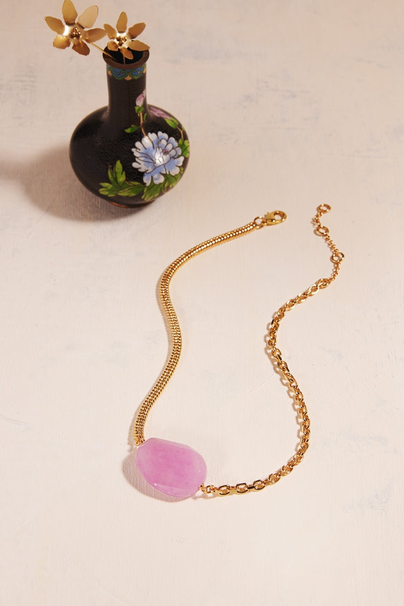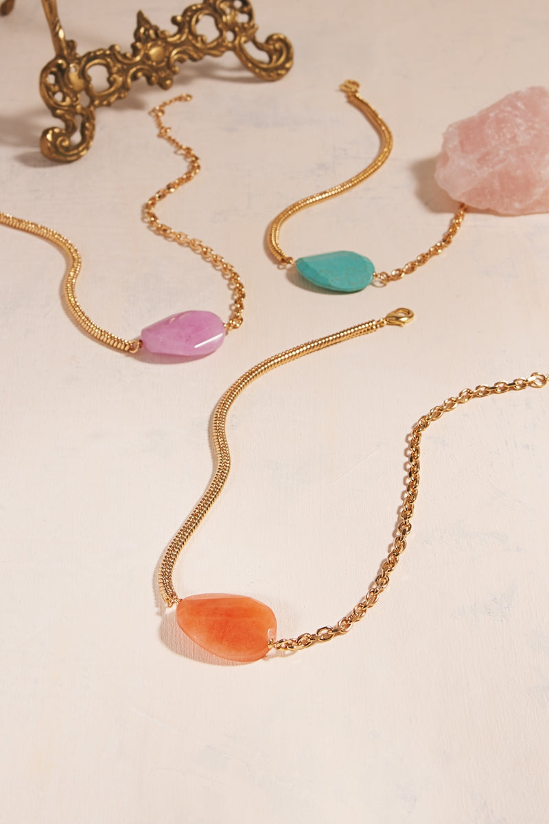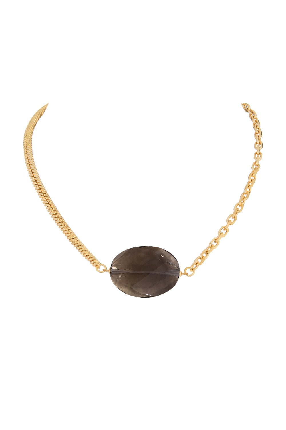 18K Gold Plated Chain Saved Oval Stone Necklace