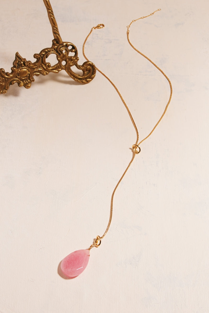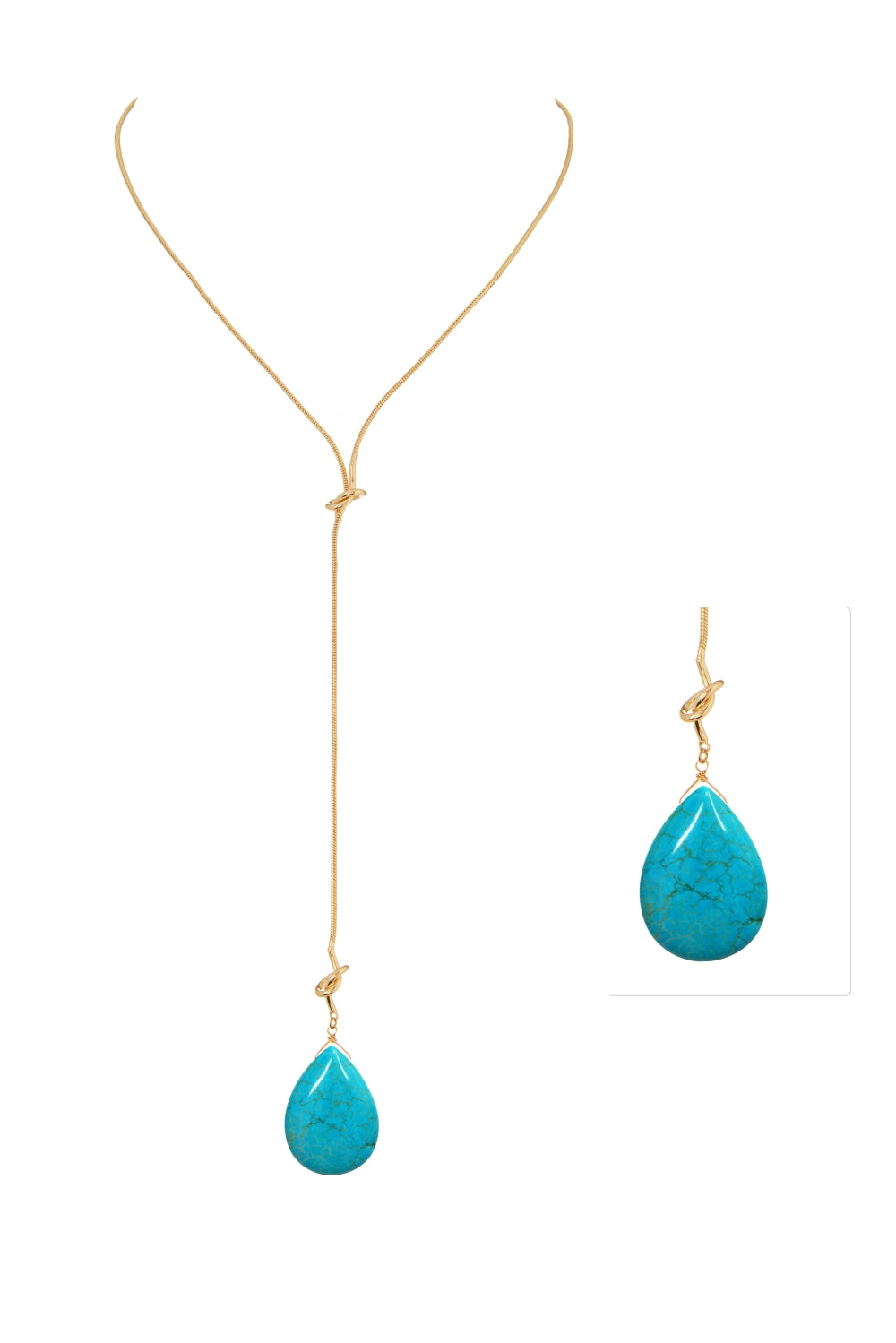 18K Gold Plated Teardrop Stone Y Shape Necklace
