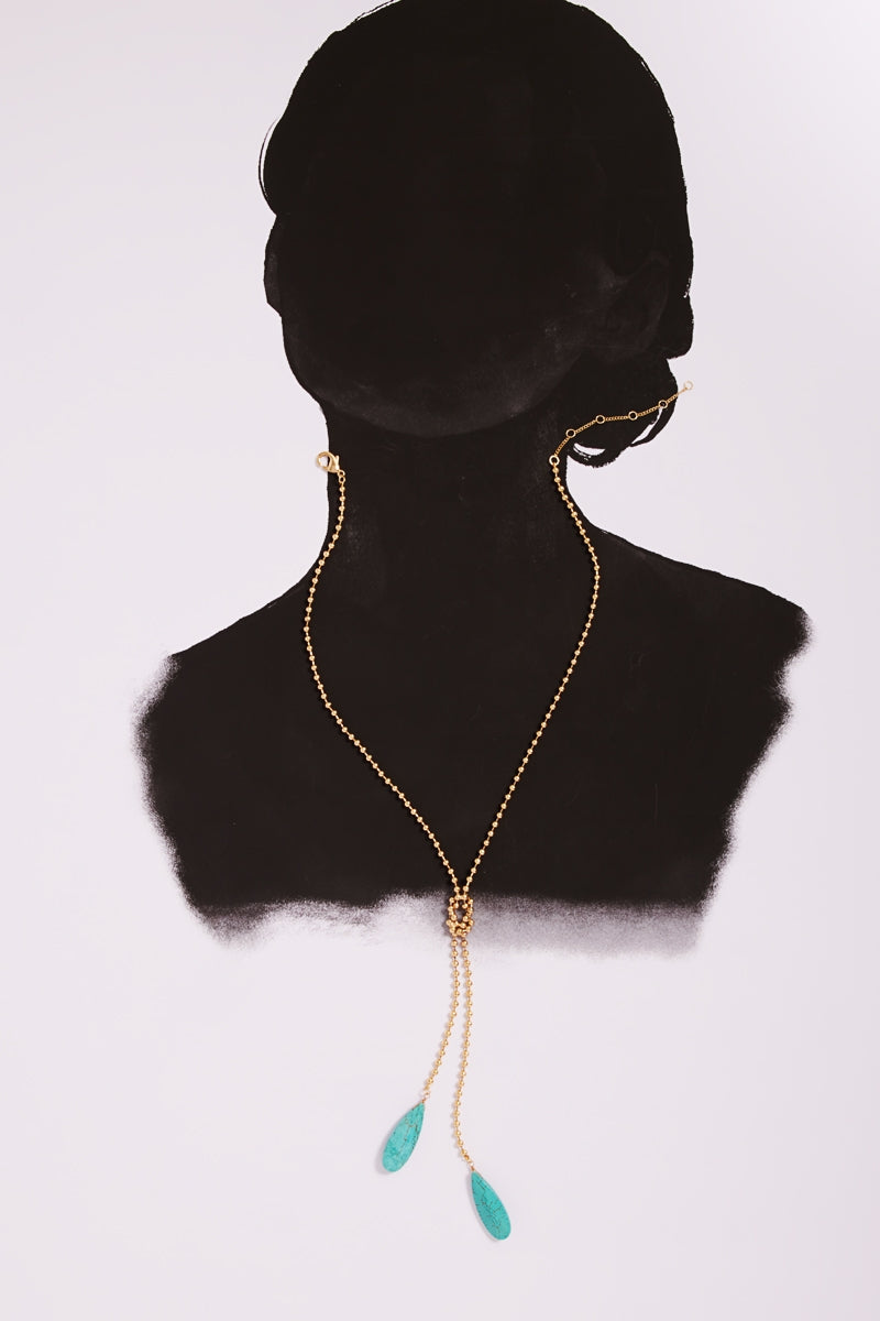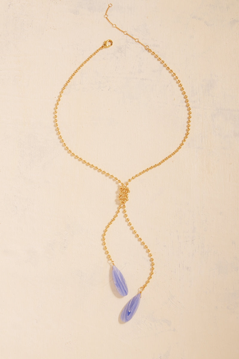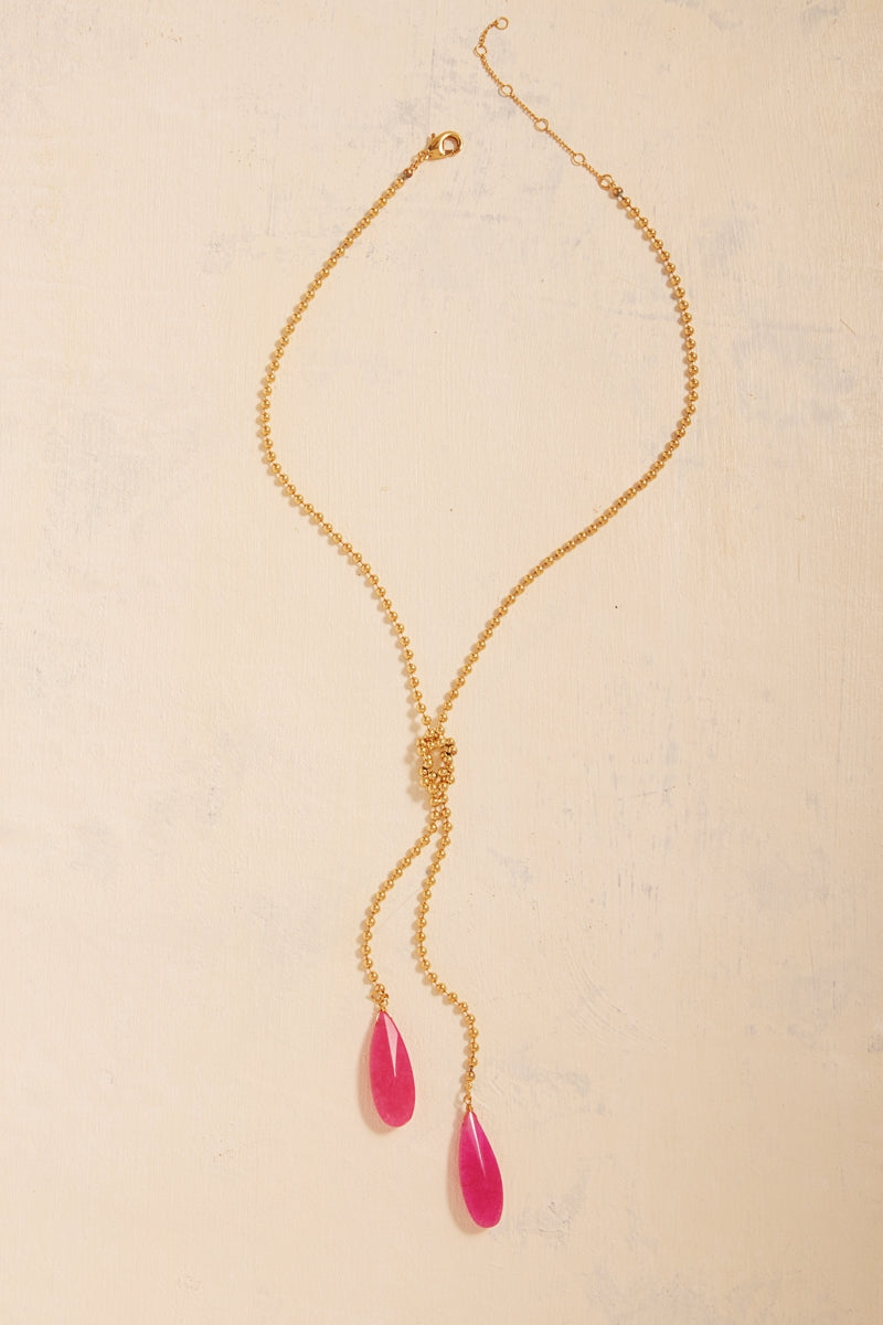18K Gold Plated W Teardrop Stone Y Shape Necklace