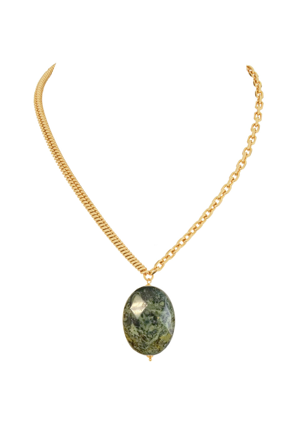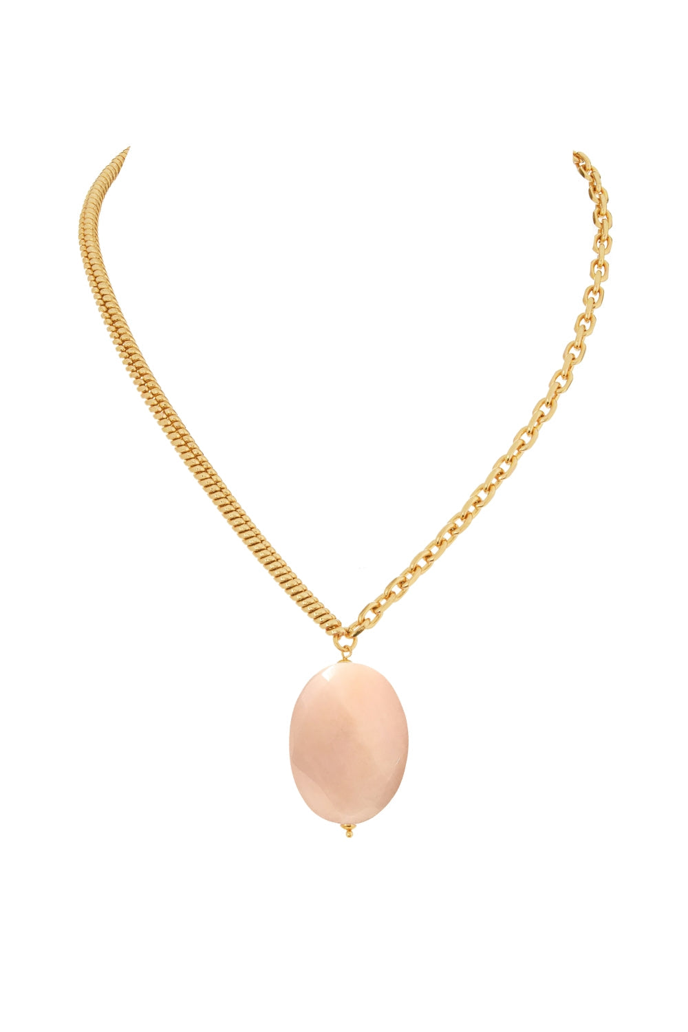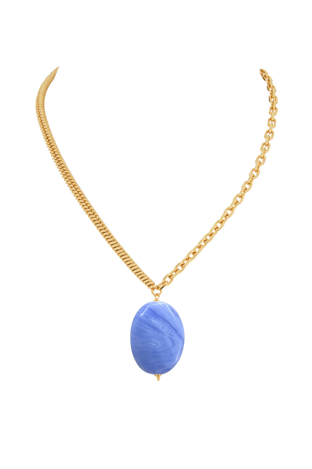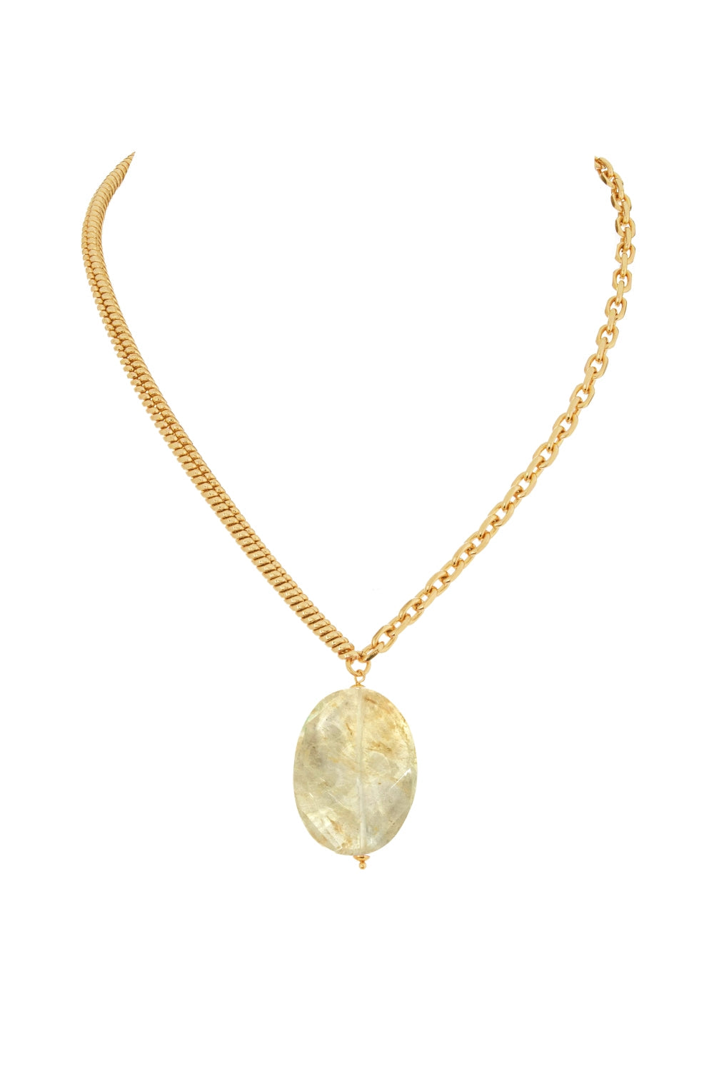 18K Gold Plated Waved Oval Stone Necklace