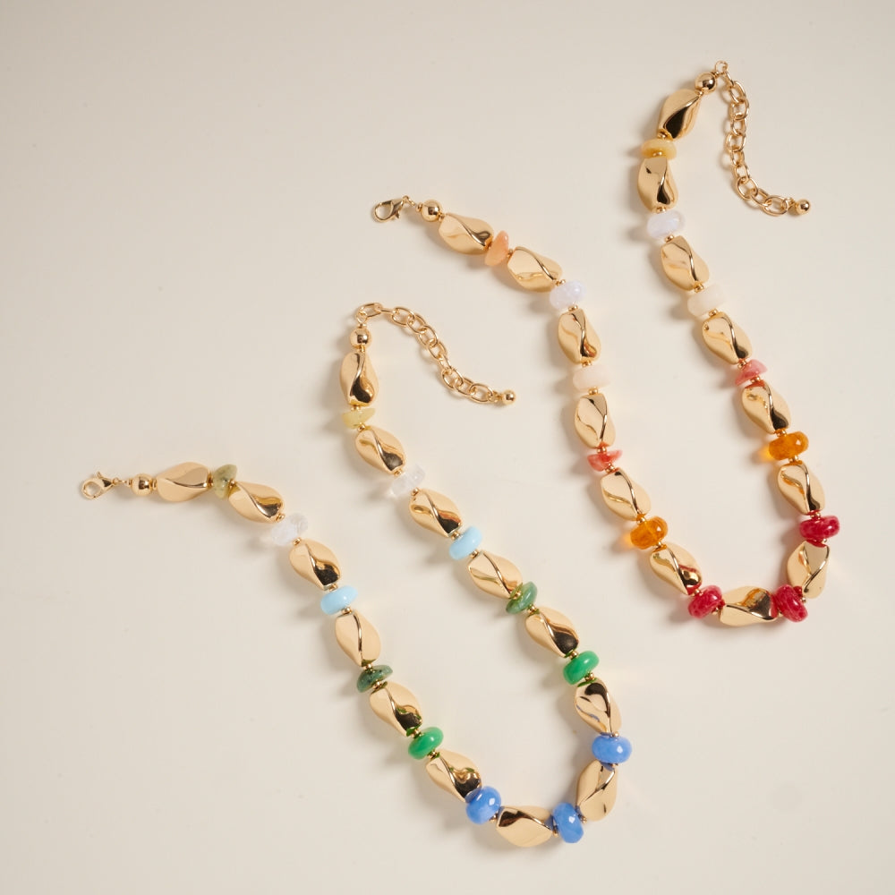 Add a pop of texture and color with this 19-inch necklace featuring mixed marbled ombre CCB beads. Lightweight and bold, it's the perfect everyday statement.