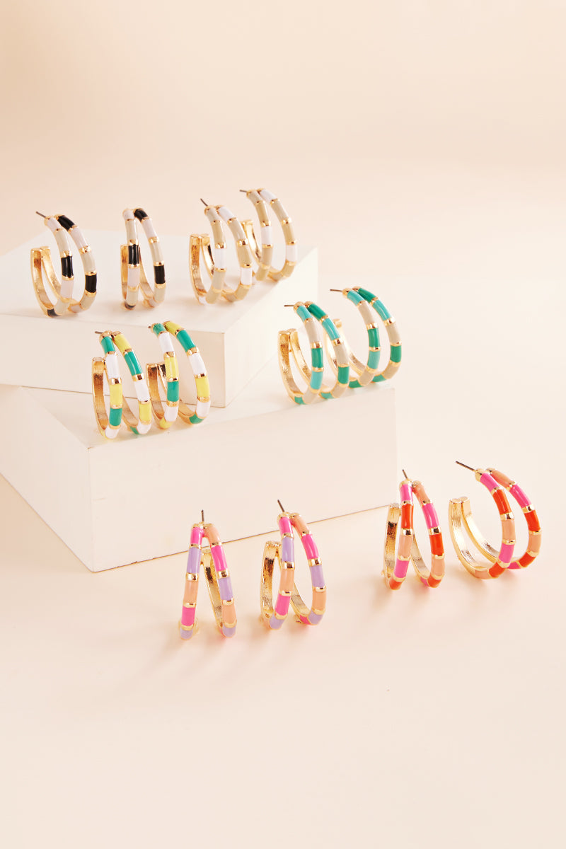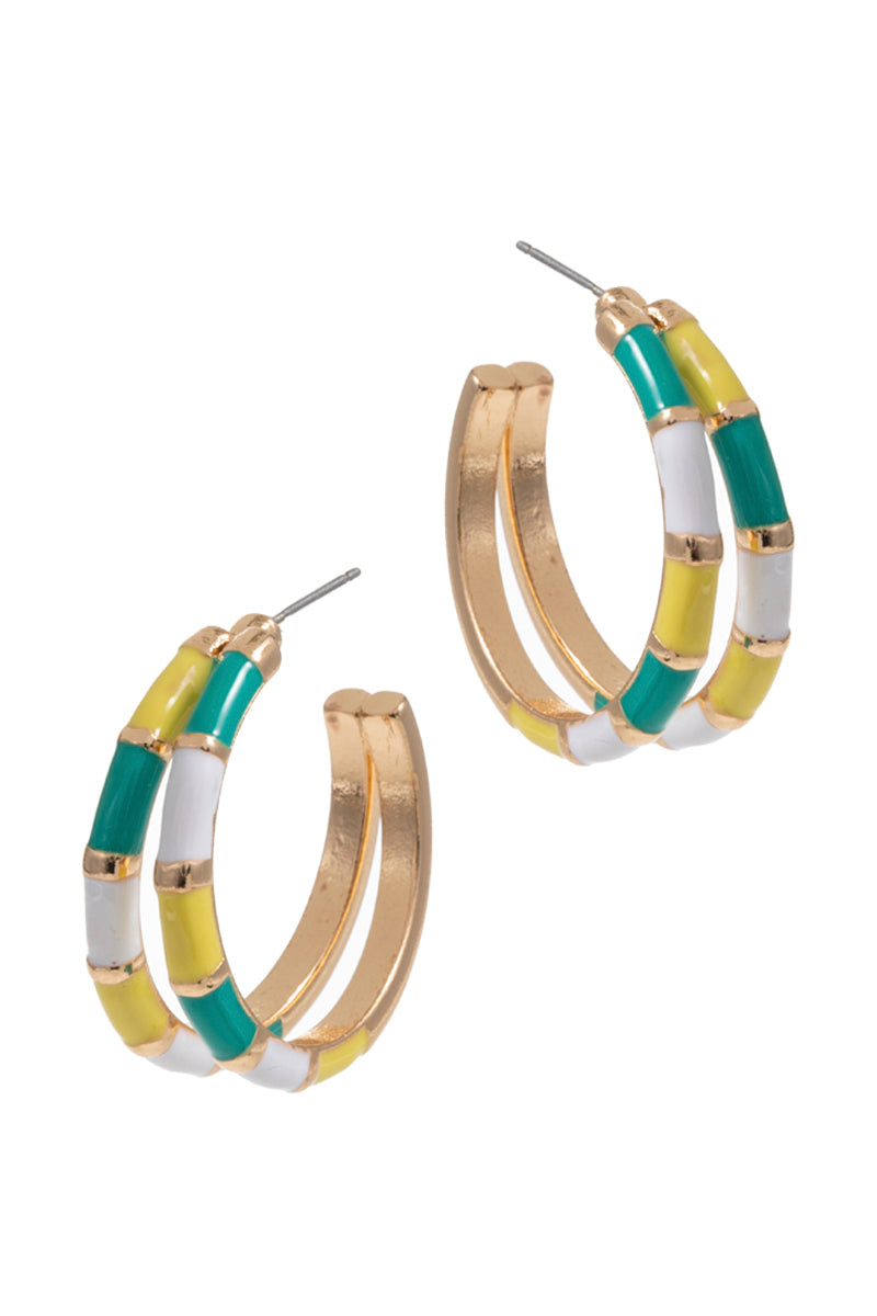 These 1.1 inch 2 layered color block hoop earrings are a stylish addition to any outfit. Made with quality materials, these earrings are lightweight and comfortable to wear.