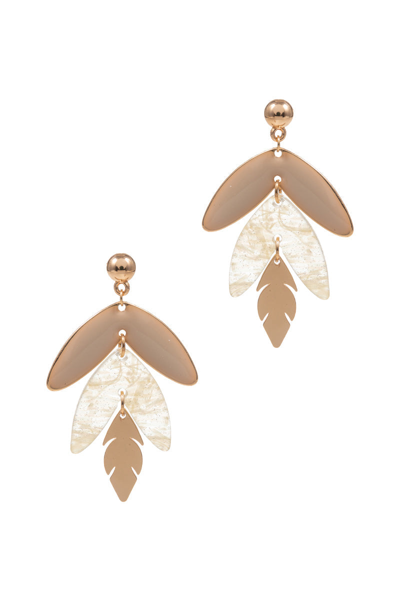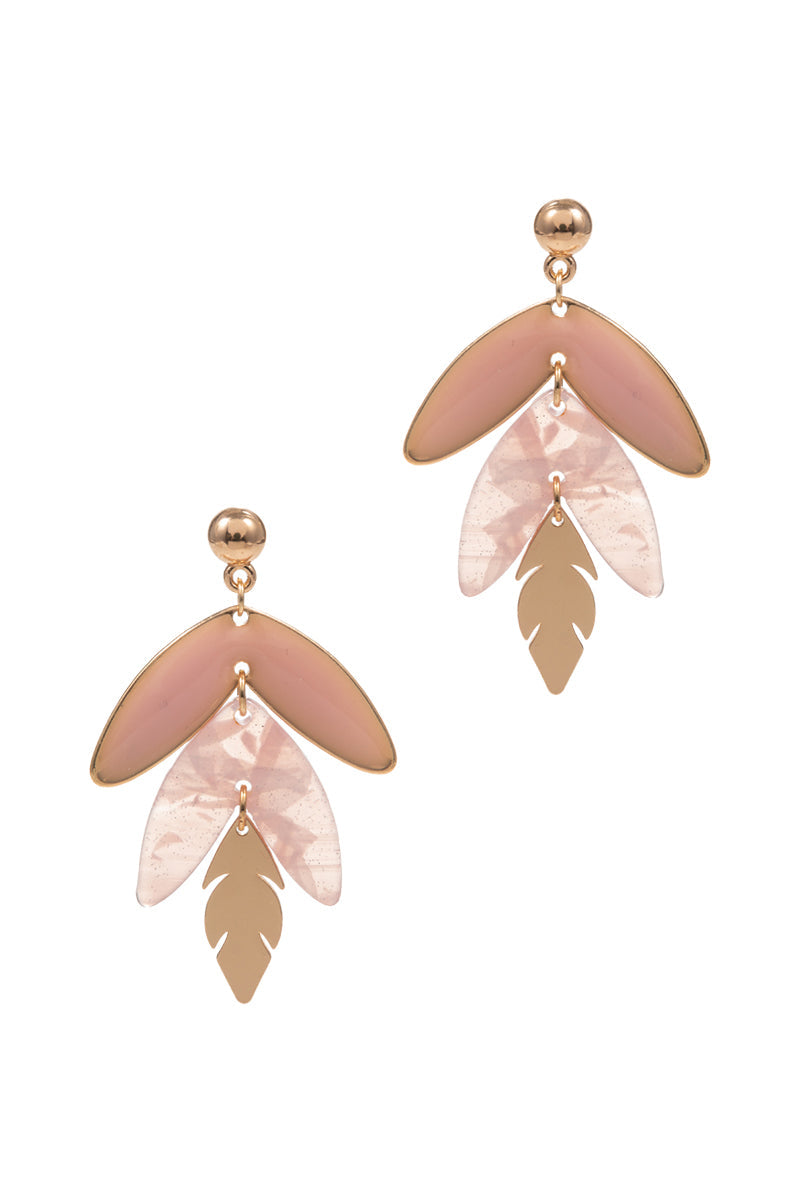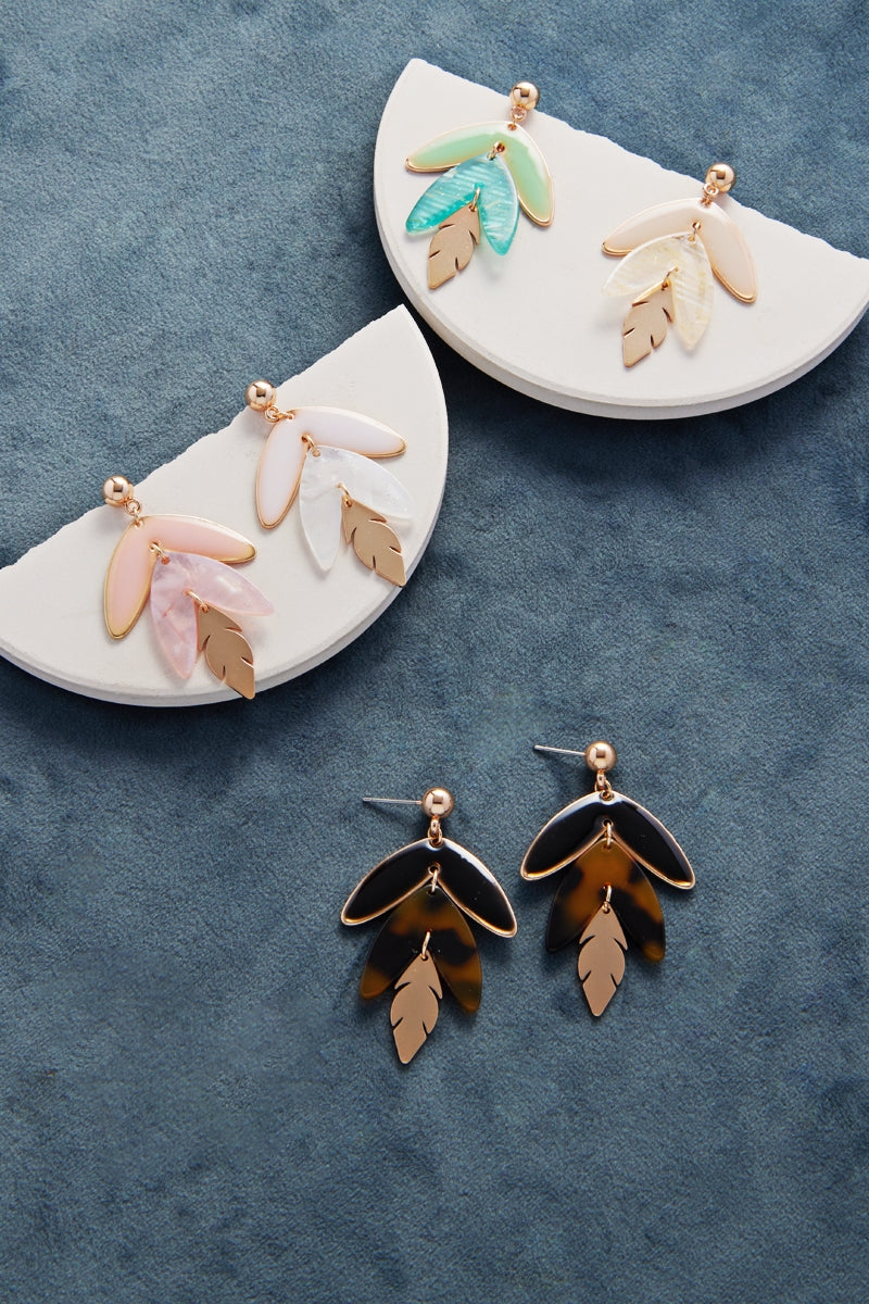 3 Drop Leaf Enamel With Resin Summer Post Earrings
