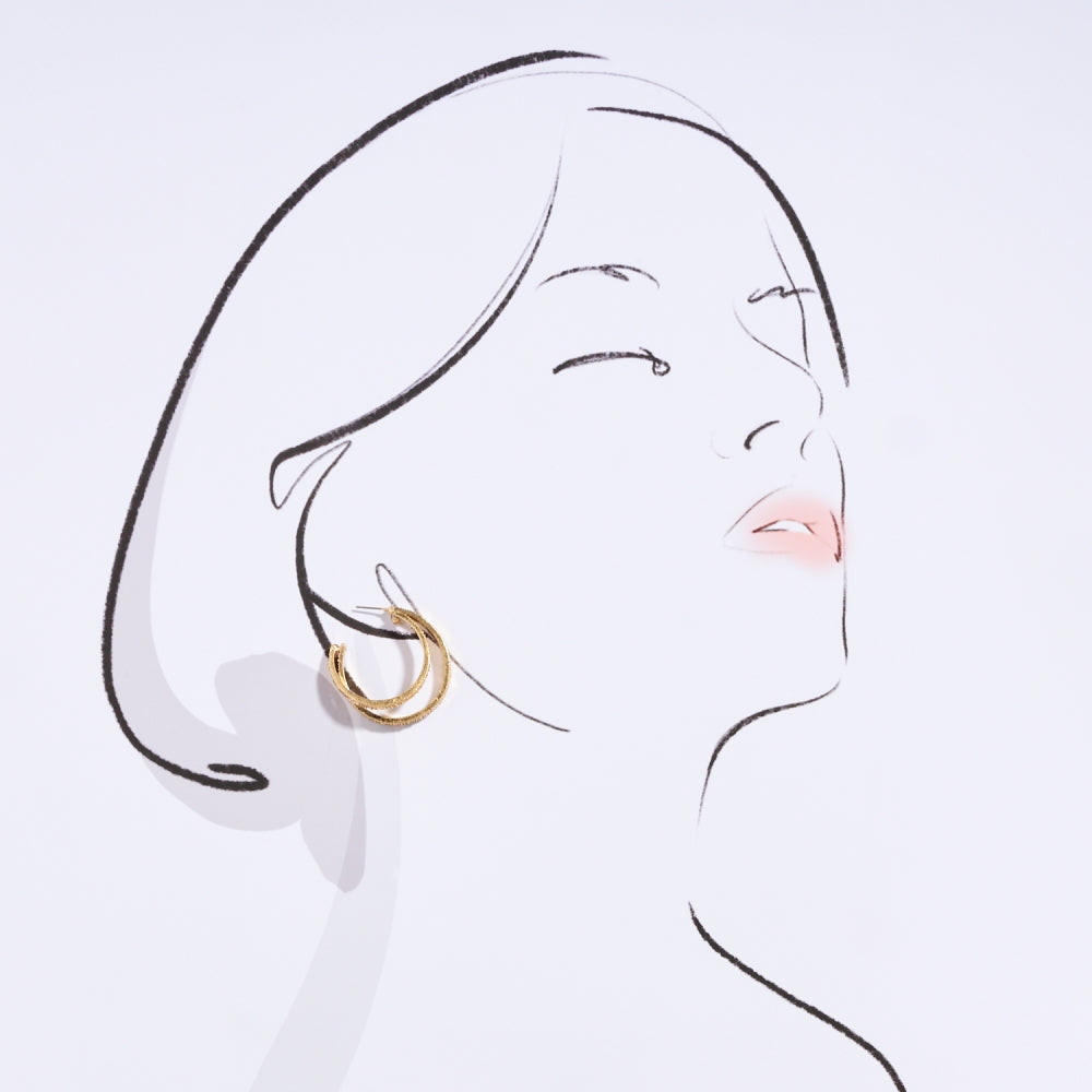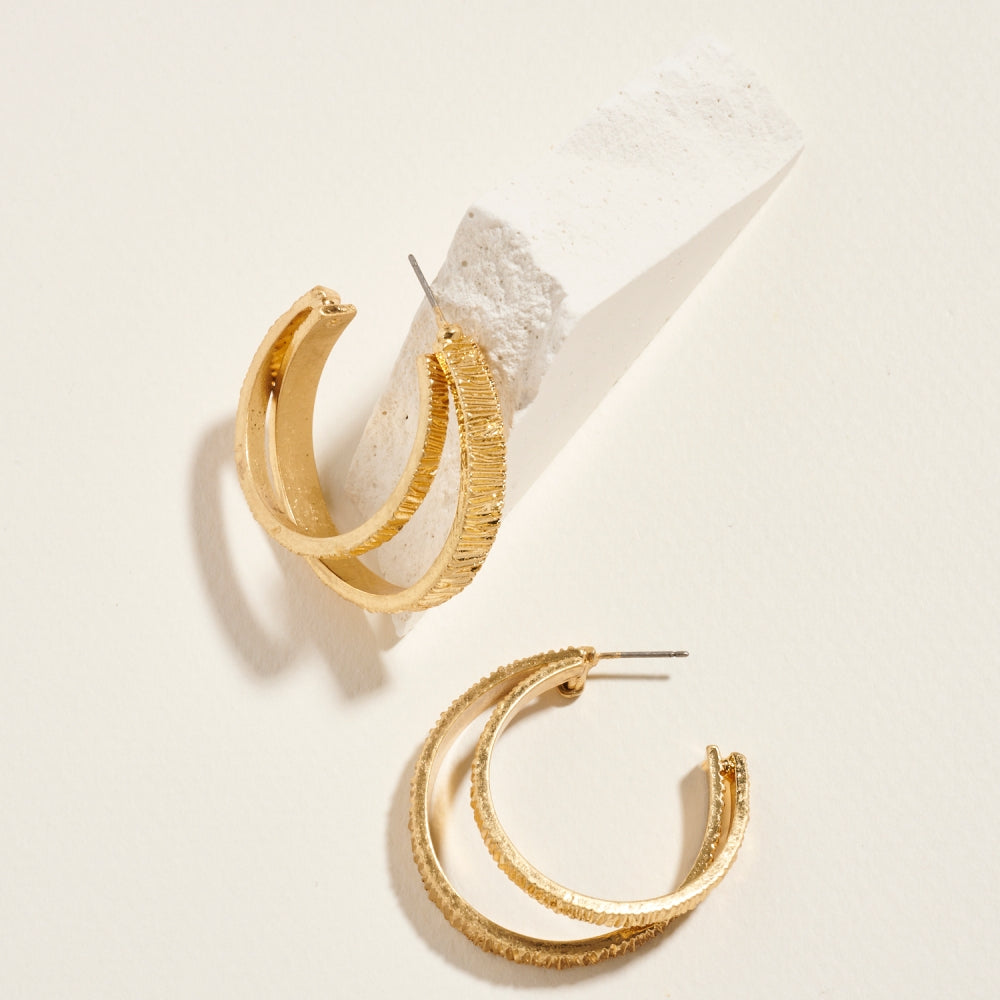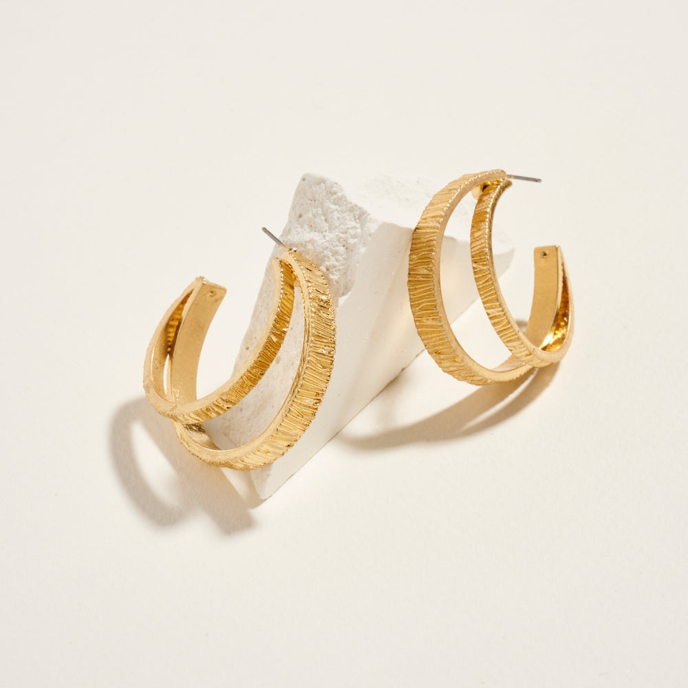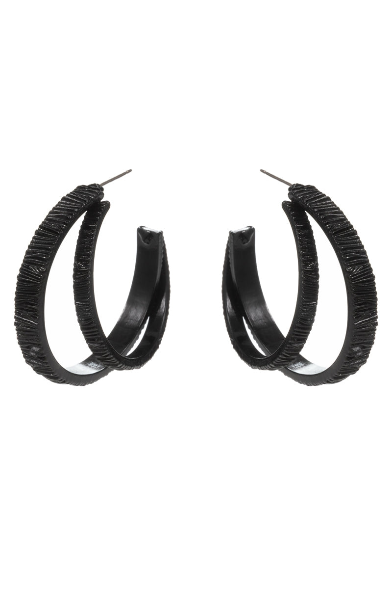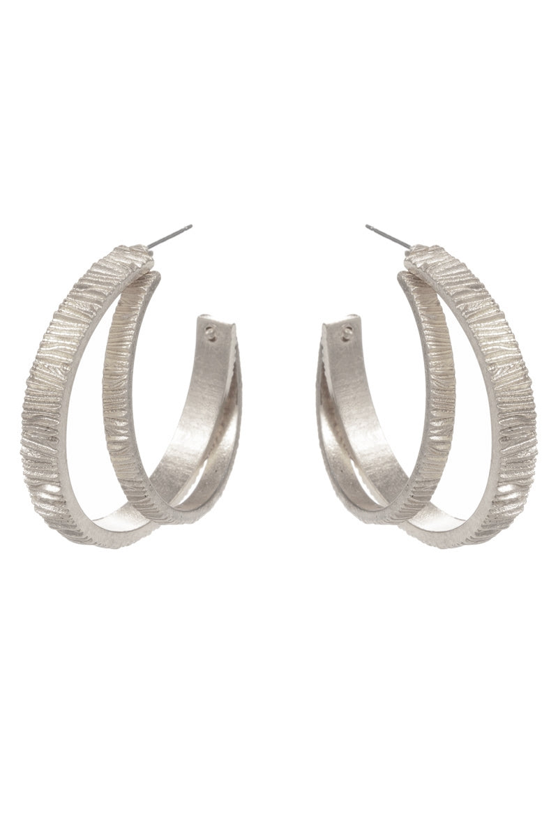 Double Metal Ribbed Circle Looped Post Earrings